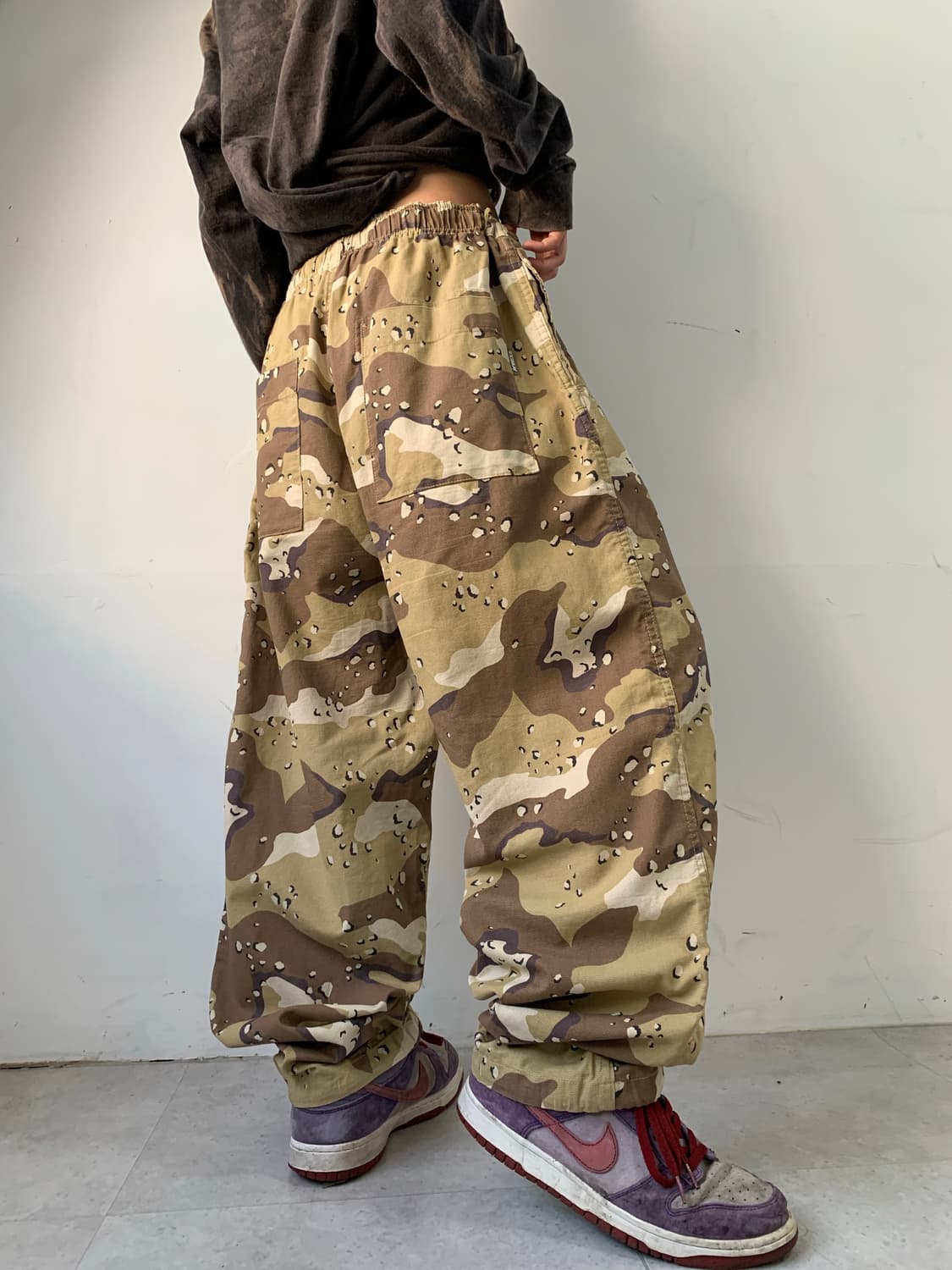 Avirex Desert Camo Cotton Pants •아비렉스 데저트카모 패텬의 코튼팬츠 •삼베 같은 소재의 얇은 소재감 •와이드한 실루엣과 허리 스트랩과 밑단 스트랩으로 사이즈 조절 가능 -허리 34inch ( 밴딩 ) 허벅지 42cm 밑단 23cm 기장 104cm -Price : 98,000