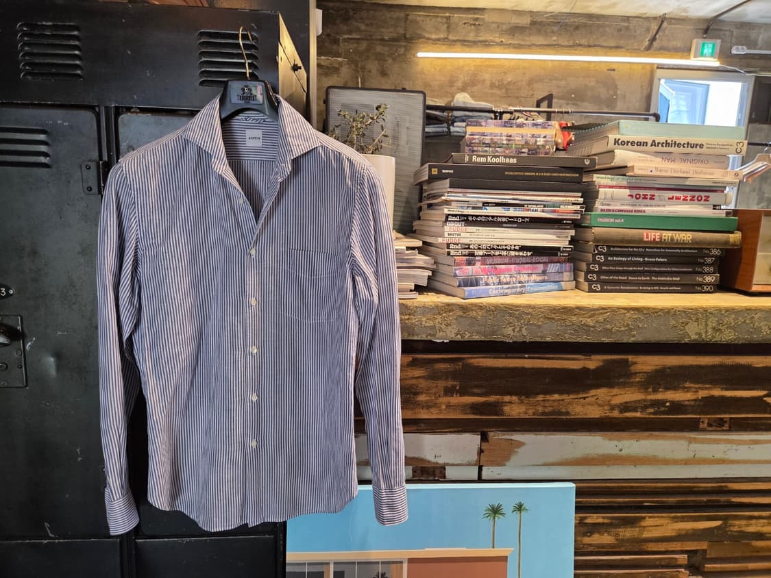 와이드 스프레드칼라의 남성적인 무드에 현대적인 실루엣으로 간결한 멋을 취한 아스페시의 한장입니다. 런던스트라이프의 경쾌함에 린넨패브릭의 질감 근사한 모델로 사이즈 국내 슬림 100 추천합니다. 감사합니다.