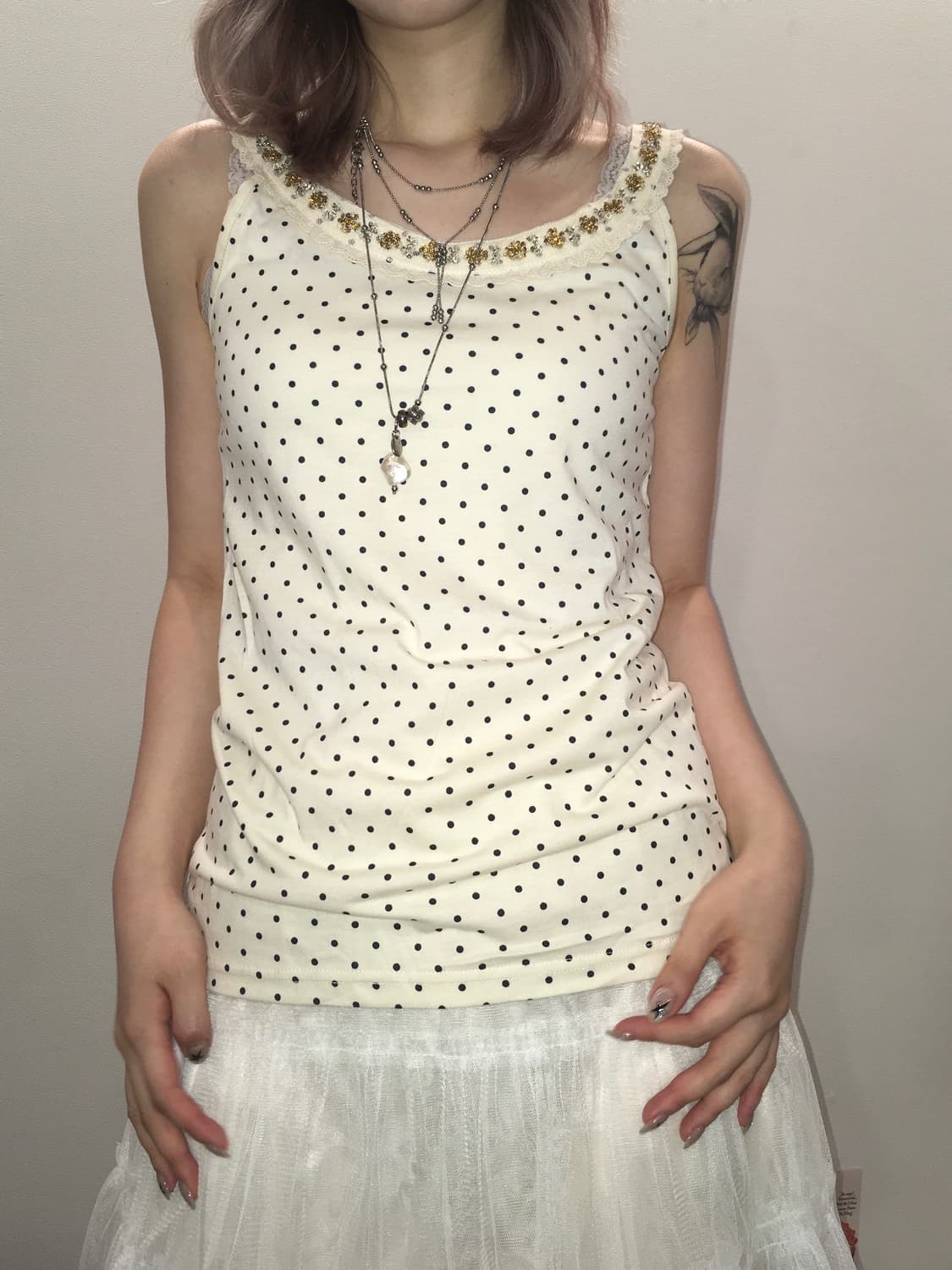 -jpn vintage dottie lace sleeveless •Brand Olive des olive •size 어깨 27 가슴 40 총장 64 •fabric 폴리65 레이온35