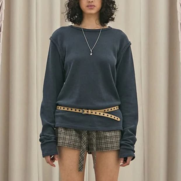 Threetimes Waffle slim tee charcoal M