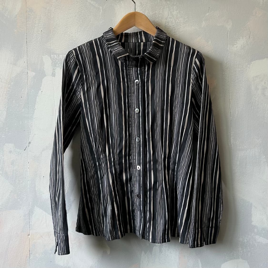 [Size] - 42 - 가슴 45 총장 57 어깨 38 소매 56 • 신축성 좋은 혼방 소재로 편안한 착용감 • 은은한 광택감이 도는 세련된 스트라이프 패턴 • 클래식한 디자인 • 우수한 컨디션 [배송비] 일반 3,000원 제주/도서산간 5,000원 #일본빈티지 #셔츠 #스트라이프셔츠