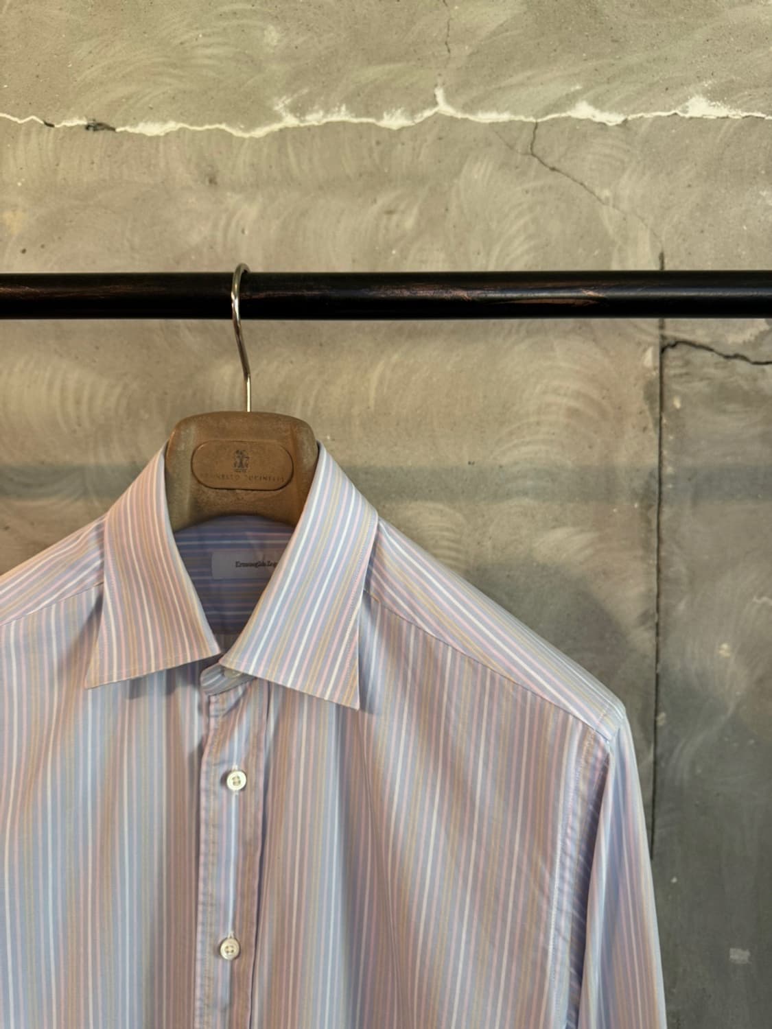 온화한 색감으로 낸 고급스러운 코튼과 드레스셔츠로써 기준을 제시한 단정함으로 어느 색감의 수트 안에서 조화를 우선으로 둔 에르메네질도 제냐의 한장입니다. 사이즈 국내 100 정사이즈 추천합니다. 감사합니다.