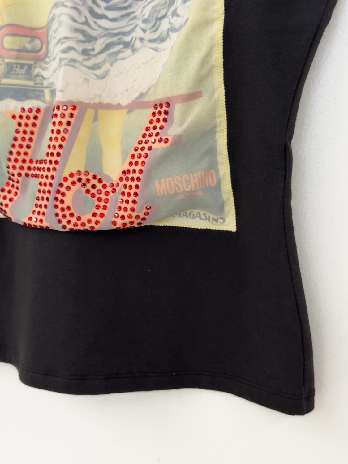 Made in Italy 모스키노의 슬리브리스 탑 입니다. 펑키한 디자인과 빈티지한 무드가 매력적인 제품 입니다. 실측 단면 사이즈 (측정 방식에 따라 1-2cm 오차가 있을 수 있습니다) 표기size 38 어깨32cm 가슴40cm 총장52cm cotton78% elastin12% poly10%