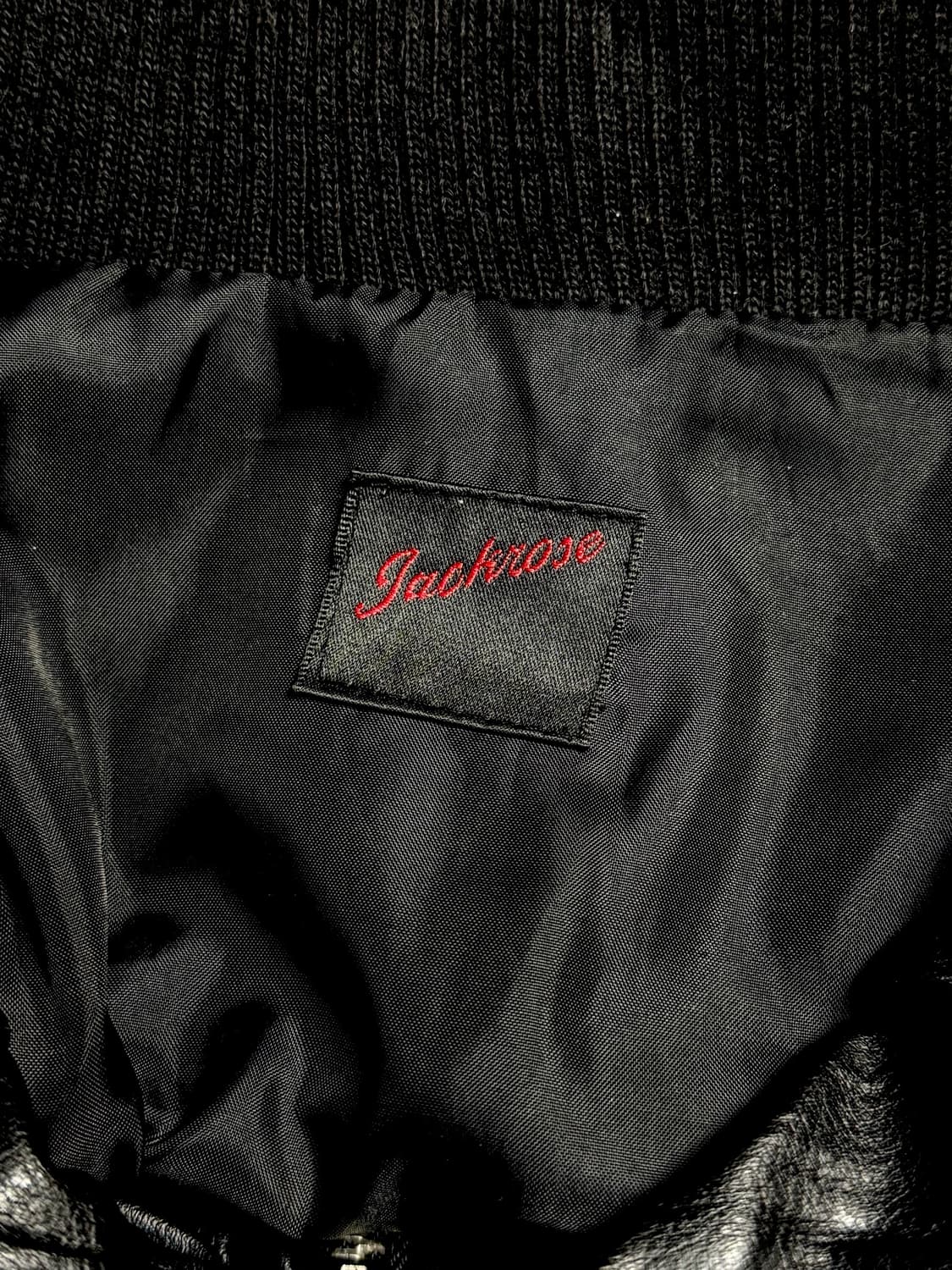 Jack Rose - Fake Leather Riders Blouson ‘Jackrose’는 2000년대 중후반 시부야계를 중심으로 큰 인기를 얻은 일본의 대표적인 락 테이스트 브랜드로, 레더웨어 중심으로 펑크, 바이커, Vkei 등 다양한 무드를 전개합니다. 블랙 페이크 레더 베이스에 전면 플랩 포켓과 지퍼 포켓이 비대칭으로 배치되어있으며, 밑단 리브 조직으로 마감되어 활동성과 캐주얼함을 동시에 갖춘 날렵하고 세련된 실루엣이 인상적인 제품입니다. 어깨: 44cm 가슴단면: 48cm 총기장: 62cm