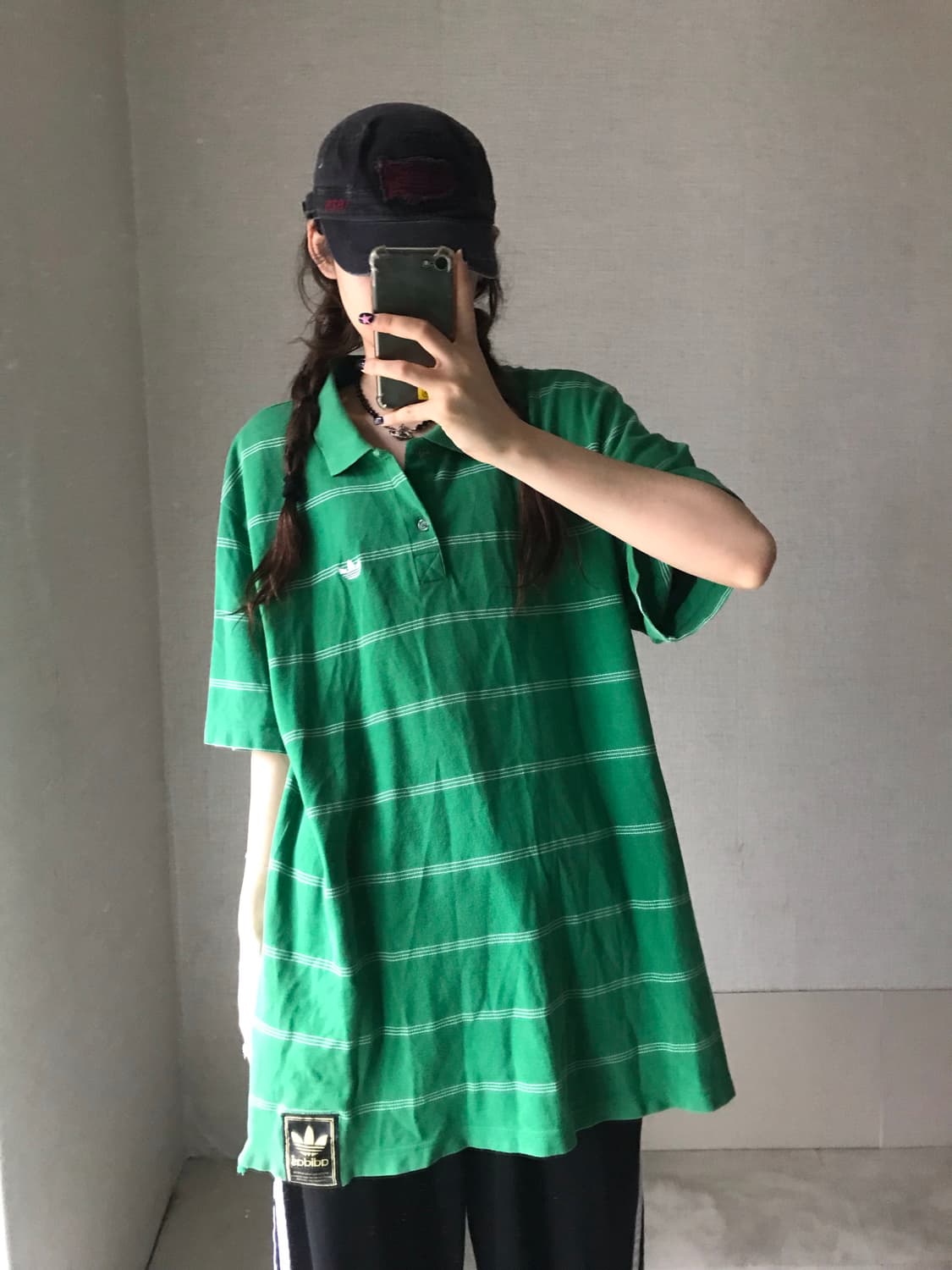 ¥ Adidas green stripe half pk Size: 총장80 가슴65 Price: 58,000