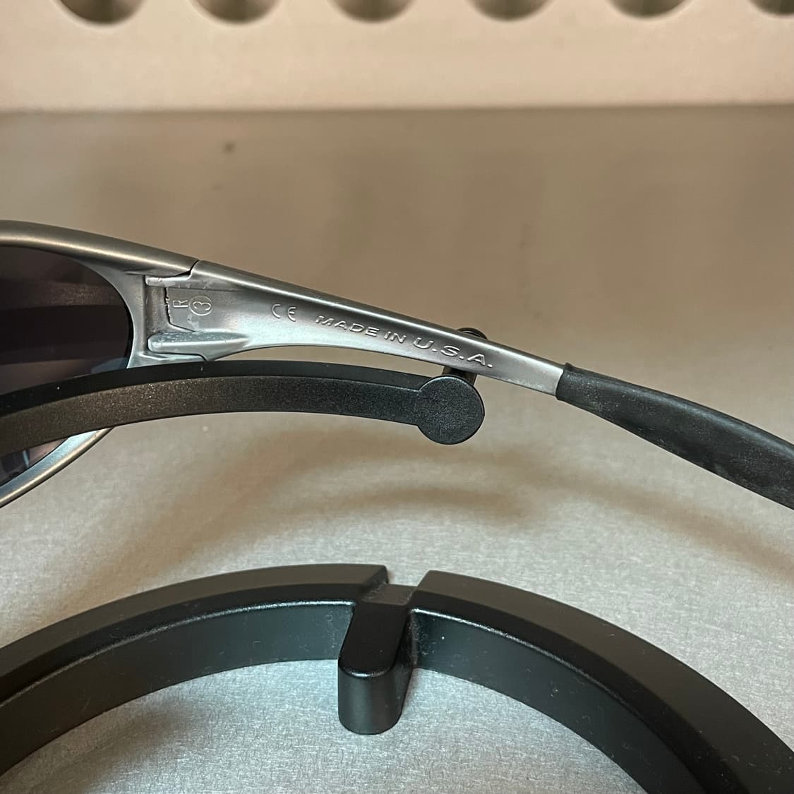 Frame : FMJ 9mm Lens : Black Iridium Date : 1999 세기말 출시된 오클리의 대표 모델 아이자켓 입니다. FMJ5.56 보다 짙은 색상의 매트한 메탈컬러 FMJ 9 프레임으로 귀하고 인기있는 컬러입니다. 순정의 블랙이리듐 조합이며 오클리 각인 지워짐 없이 프레임과 렌즈 상태 좋습니다. 1990년대~ 2000년대초 출시된 오클리 선글라스는 아직까지도 디자인, 기능 모든게 센세이션한 아이템으로 인정받아 전세계 많은 매니아들이 있으며 현행 제품보다 가치가 더욱 높아지고 있습니다.
