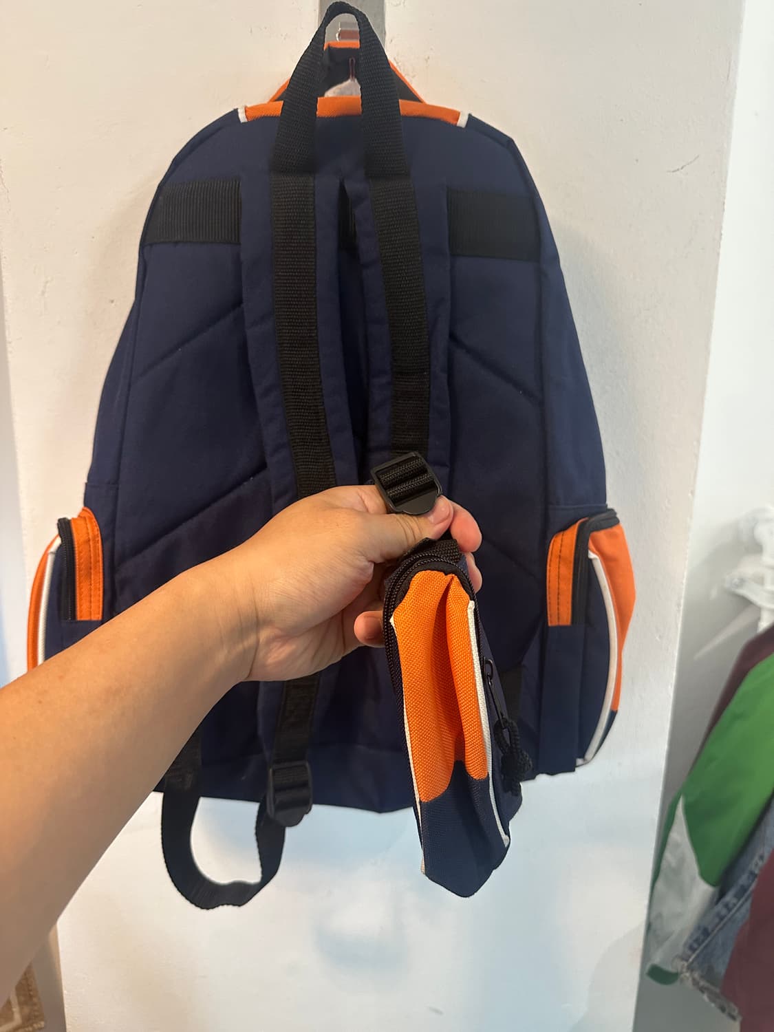 오렌지컬러가 매력적인 폴로 백팩입니다. 현행에는 이런 백팩은 나오지 않고 빈티지에서만 즐길 수 있다 판단되어 가져오게 되었습니다. 디자인과 퀄리티 다 좋습니다. 가장 저에게 좋은 자극을 준건 윗부분 손잡이를 이중으로 디자인 한 점인데 제 생각으로는 어디에 걸어둘땐 뒤쪽 검은 부분으로 걸어놓고 직관적으로 손으로 가방을 집을때 주황부분으로 편하게 들 수 있게 디자인 한것 같습니다. 감사합니다. 가로 37 x 세로 50 x 폭 12 (cm)