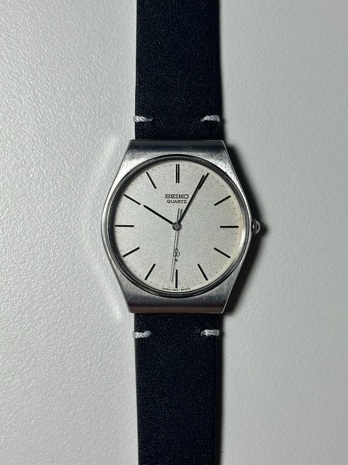 SEIKO • 세이코 쿼츠 빈티지 • 쿼츠 • 33mm 세이코 쿼츠 모델로 깔끔한 베젤과 깔끔한 문자판이 인상적인 제품으로 기본 아이템 입문용으로 가장 추천 드립니다. 얇은 두께감으로 드레스 워치를 연상 시키는 제품 입니다. 빈티지 스트랩을 추가하면서 빈티지 세이코 특유의 디자인과 장점을 부각 시킨 모델 입니다. -후르츠 한정- 1. 후루츠 + 인스타그램 팔로잉 2. 소중한 후기 잘 작성해주시면 택배비 무료로 도와드리고 있습니다. #빈티지#세이코#빈티지시계#빈티지세이코#쿼츠#세이코#손목시계