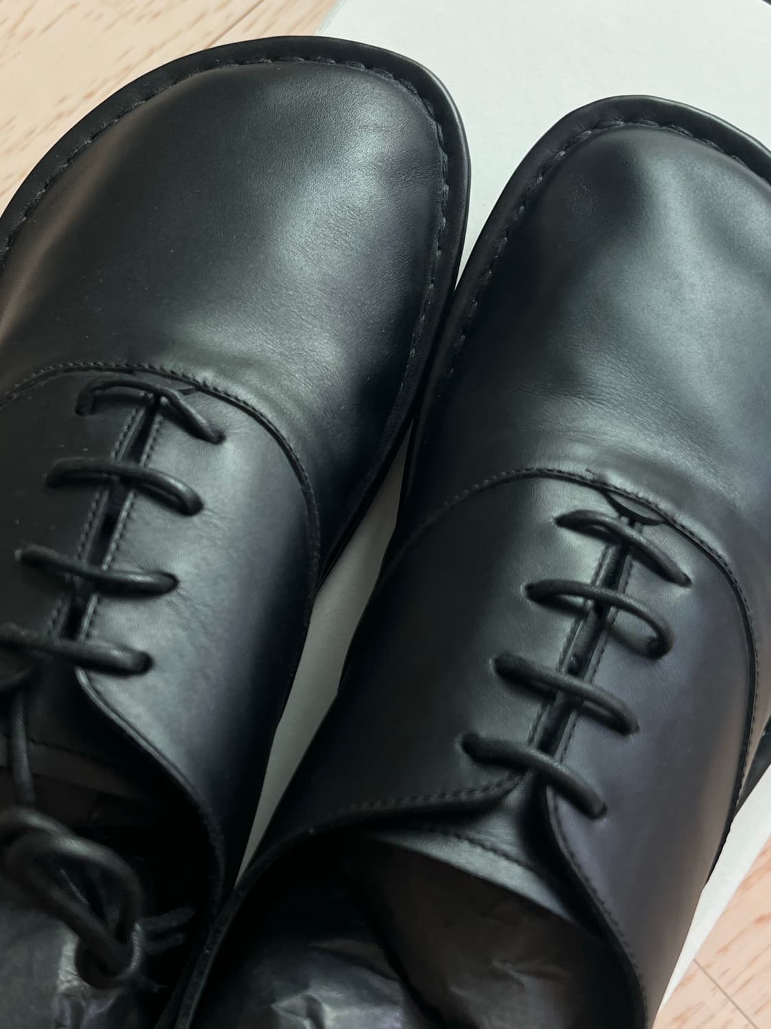 사이즈 40(발볼도 그렇고 크게나와 260신으시면 충분합니다) 구성: 풀박스 정가 120만원의 로에베 폴리오 더비입니다 특유의 토 쉐잎과 고퀄리티의 밑창 디자인이 매력적이며 플랫한 레더 슈즈가 유행하는 시점에서 신는 사람의 조금 다른 취향을 넌지시 보여주기 좋은 제품이라고 생각합니다