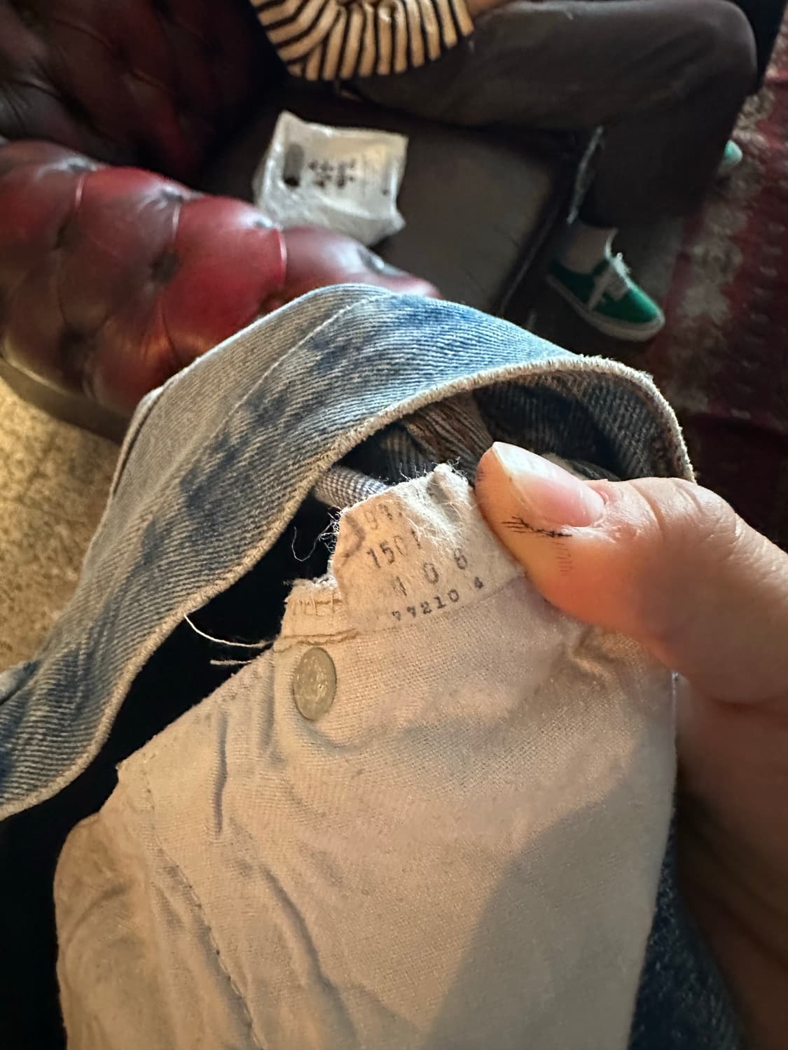 1980년 1월 생산 탑버튼 6 표기 32 실측 29-30 추천 드립니다. Condition : 8/10 Size : 허리 39 허벅지 31 밑위 29.5 밑단 20 총장 111 표기 사이즈 (체감) : 32 (29-30) PRICE : 358,000 대구에 매장이 있으니 편하게 입어보실 수 있습니다. 구매전 메세지 주세요. 빈티지 제품 특성상 미처보지 못한 오염, 데미지 있을 수 있습니다. 실제와 색감이 다를 수 있습니다. 측정방법에 따라 1~2cm 차이가 발생할 수 있습니다. 교환이나 환불은 불가능합니다. (신중히 구매해 주세요. 교환 환불 문의 응답하지 않습니다) 민감하신 분들은 구매하지 않으셔도 됩니다.