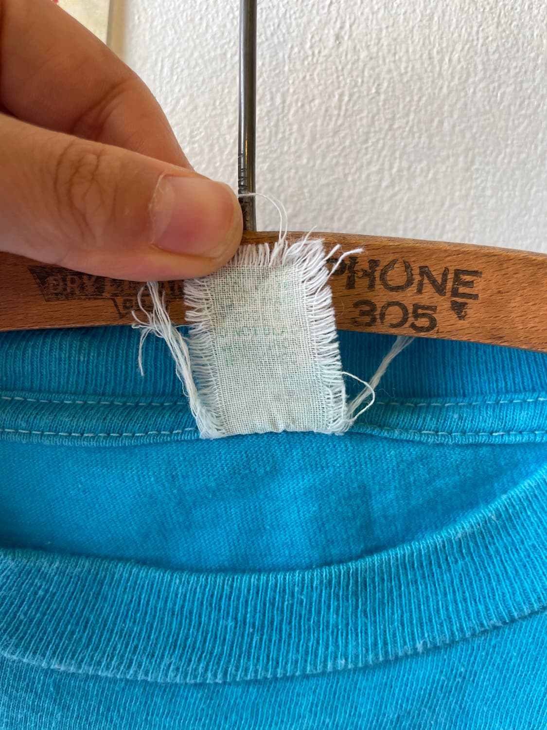 1970s~80s Vintage MADEIRA BEACH FLORIDA Tee Made in U.S.A 1970s 후반 ~ 1980s 초반 플로리다 메데이라 비치 기념 빈티지 티셔츠입니다. 시원한 터콰이즈 블루 컬러와 빈티지 라버 프린트가 특징이며, 원포인트 디자인으로 깔끔하면서도 빈티지한 느낌이네요. 1970~80년대 미국 해변 기념품샵에서 판매되었던 아이템으로, 세월의 흔적이 고스란히 담긴 프린팅 크랙과 자연스러운 페이드감이 매력적입니다. -size 실측(cm) 어깨 41 가슴 47 팔 15 총장 58 #빈티지티셔츠