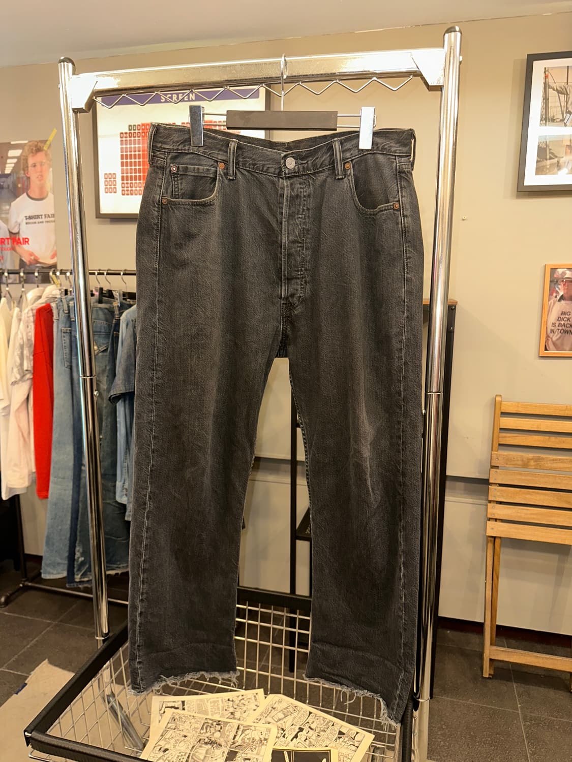 Levi’s 501 black washed detail denim pants 미국 대표 데님 브랜드 `Levi’s’ 사의 501라인 블랙 워시드 데님입니다. 항간엔 스트레이트, 플레의 품으로 아웃핏들이 바껴가고 있는 요즘입니다. 그러면서 자연스럽게 Levi’s사 빠질 수 없게 되기도 했지요. 현 트렌드 상, 일반적인 데님도 좋지만 블랙 데님의 수요가 급증하고 있는 시즌이라 90년도에 만들어진 계체가 아니더라도 블랙데님의 계체는 찾기 힘들어졌습니다. 전 Made in USA를 좋아하는 편이지만 요 블랙 데님이 물도 잘 빠지며 허리사이즈가 너무 좋아 가지고 온 녀석입니다. 현행이긴 하지만 요 정도의 퀄리티를 잘 보이는 피스가 잘 없기에 소개시켜 드리는 녀석입니다. 현행이니, 합리적인 금액으로 측정합니다! - 총장 100 허리 43 밑위 34 허벅지 34 밑단 22 - Size: 34 (표기) - Price: 3.5 - • 빈티지 특성상 약간의 오염이 있을 수 있습니다. • 교환, 환불이 어려워 신중한 구매부탁드립니다. • 약간의 사이즈 오차(1,2cm)가 있을 수 있습니다. - Contact DM Discount ALSO