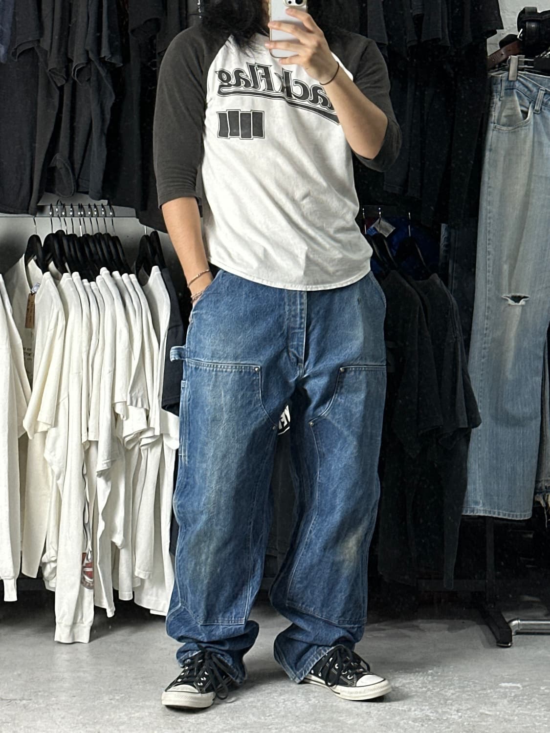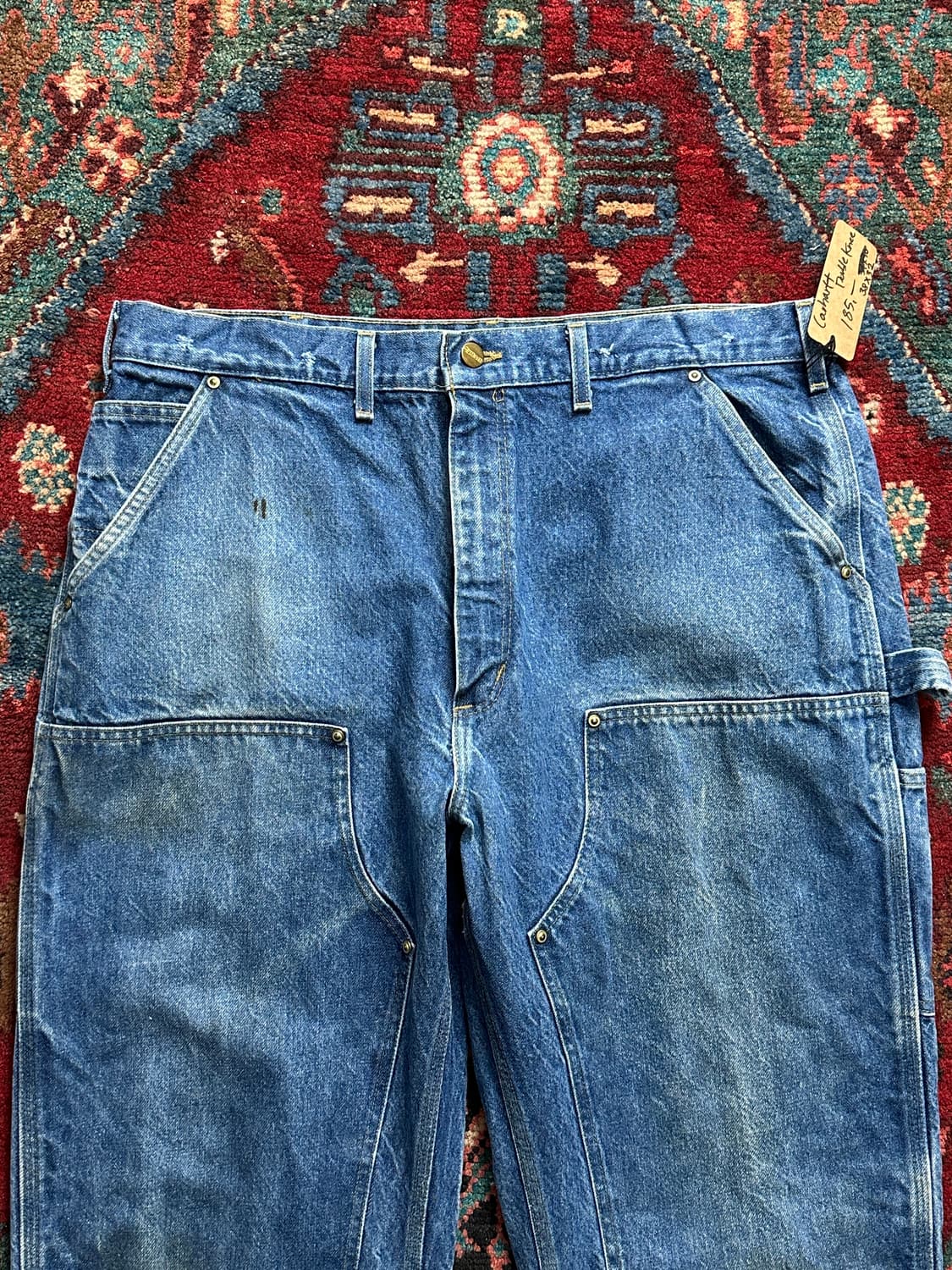 00's OG Carhartt Denim Double Knee Pants 38X32 size Made in USA 🇺🇸 00’s OG 칼하트 데님 더블니 팬츠 38X32 제가 더블니 좋아하는건 다들 알고 계실텐데 저는 사실 더블니 중에서도 데님버전들을 유독 좋아합니다 소장하고 있는것도 데님버전 밖에 없구요 더블니 특유의 패널 디자인이 데님과 조합될때 가장 잘어울린다고 보거든요 캔버스 더블니는 제 기준에서 워크웨어 느낌이 강하고 데님 더블니는 조금더 멋부린? 느낌으로 다가옵니다 그냥 데님 더블니는 아니고 최대한 색이 빠지고 더럽고 이왕이면 패널 위나 무릎이 찢어진 상태의 개체 말이죠 요즘은 좀처럼 안보이는 00년대 초반 미제 개체 앞전에 업데이트된 녀석들과 비교하면 점잖게 빠진 워싱감 허리: 48 허벅지: 36 밑위: 35 밑단: 23 총장: 111 180/73 💥 매장 주소: 서울 광진구 뚝섬로 476-21 1층 [ 1:00PM - 8:00PM / 월,화,수 휴무 변동가능 인스타 스토리 확인 부탁드립니다] 💥 💥올라와있는 상품 전부 판매중이니 문의 없이 바로 안전결제 가능합니다💥 💥 표기된 사이즈는 브랜드 별로 다 다릅니다 꼭 가지고 계신 옷과 실측 비교후 문의, 구매 부탁드립니다 💥 💥 빈티지 특성상 교환,환불 불가합니다 💥 확인이 힘든 오염,이염 있을수있으니 중고제품에 민감하신 분들은 신중한 구매 결정 부탁드립니다🙏