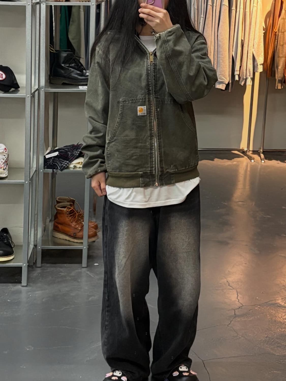 •칼하트 오리지날 샌드스톤 엑티브 워크 자켓 모스 그린 • price :190,000won • 표기사이즈-(XL) / 실사이즈-(S) • 기장-64가슴단면-52 • Condition : 얼룩 있음 마지막 2장 참고 외에 눈에 띄는 오염없이 상태 좋은 편 입니다. - 배송비 3500원 / 제주 및 산간지역 7000원 - 모델 163cm / 44size - 두개이상 구매시 무료배송 세개이상 구매시 무료배송 및 오천원 할인❗️(제주도 4천원 추가) - 빈티지의류 특성상 약간의 미세오염 및 미세 데미지가 있을 수 있습니다. - 구매문의는 게시물 보내기로 부탁드립니다 💌 #SALT구매가능