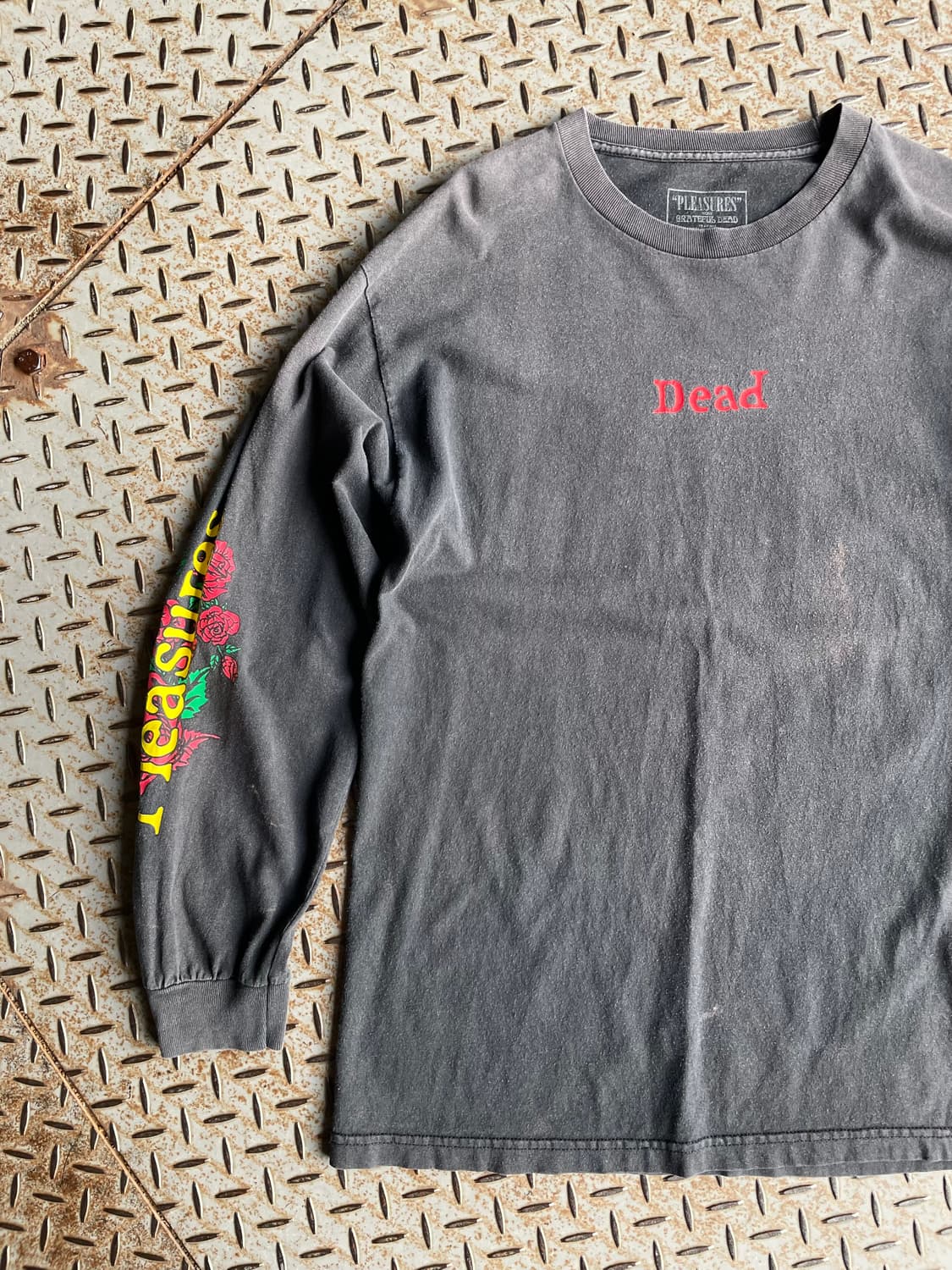 PLEASURES x GRATEFUL DEAD hard faded long sleeve 미국발 스트릿 브랜드 PLEASURES와 그레이트풀 데드 협업 캡슐 컬렉션 하드한 페이드, 크랙이 매력적인 모델입니다. 어깨 54 가슴 54 총장 76 팔 62 (cm)