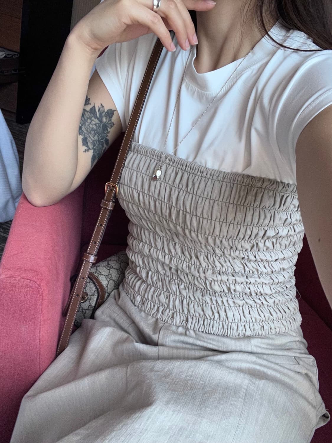 스노우피크 반팔 후드 패딩 자켓 라이트베이지 M