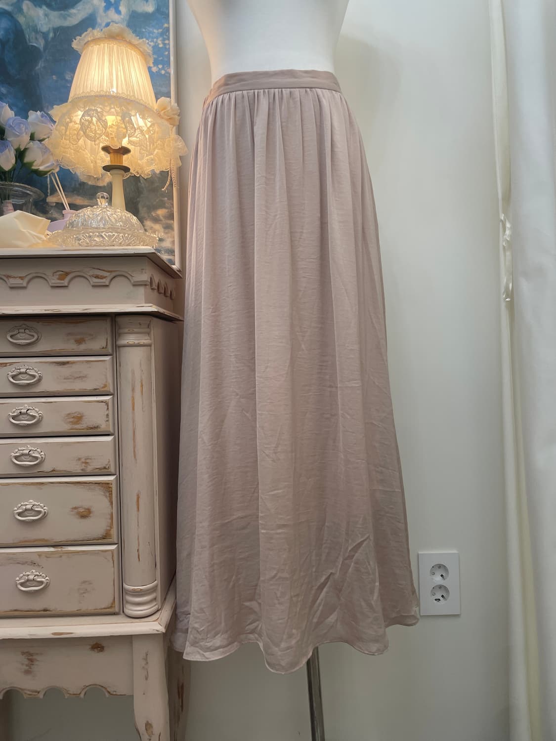 pinkbeige back banding basic long skirt(size-M) 핑크베이지 백 밴딩 베이직 롱 스커트 #일본빈티지 #발레코어 #페어리코어 #모리걸 #러블리 #히메갸루 #리즈리사 #리즈멜로 #엑시즈팜 #로걀 #코티지신드롬