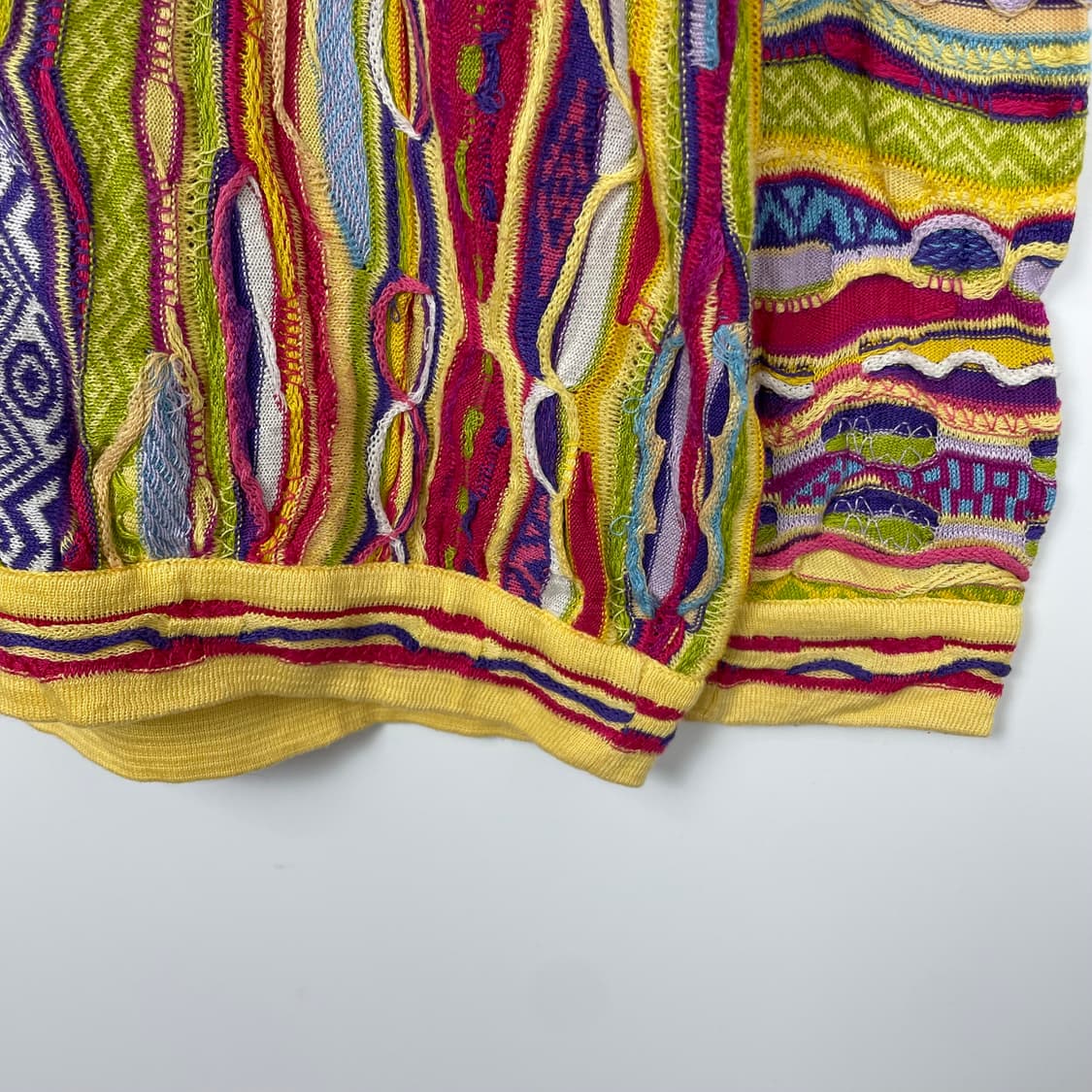 어깨 48 가슴 52 팔기장 50.5 총기장 61 쿠지의 코튼 패턴 니트 입니다. 빈티지 제품의 특성상 착용의 유무를 알 수 없어 교환 및 환불이 불가합니다. (택이 달린 데드스탁 제품도 마찬가지입니다.) 실측 1~2cm 정도 오차는 있을 수 있습니다. 구매 전 실측 사이즈를 꼭 비교 부탁드리며, 신중한 구매 부탁드립니다.