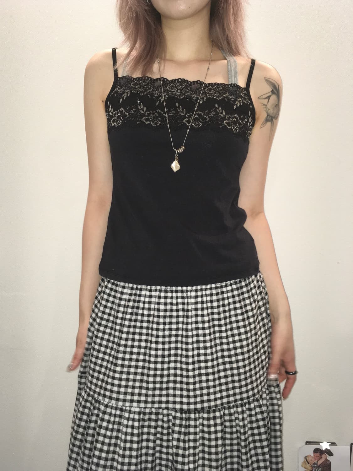 -jpn vintage 블랙 플로럴 레이스 슬리브리스 •Brand Hey firl studio •size 어깨 32 가슴 37 총장 51 •fabric 코튼95 스판5 🩶0393