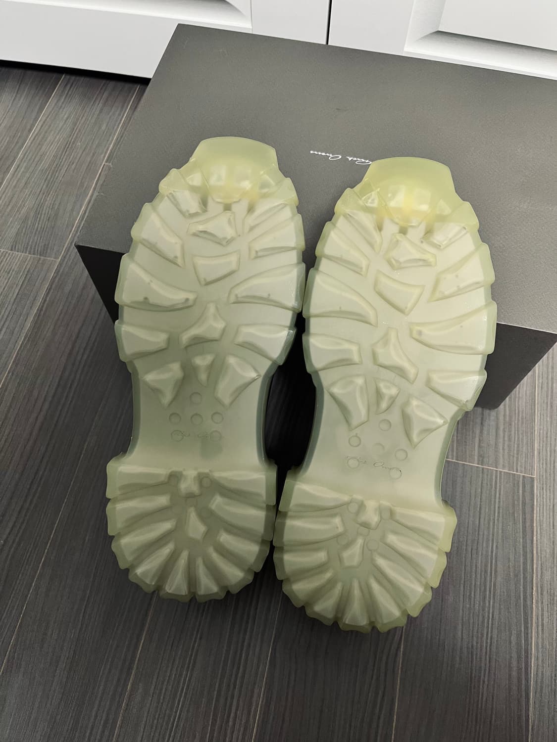브랜드 및 제품명 : 릭오웬스 트랙터 슬립온 스니커즈 제품 보충 설명 : 한 시즌만 출시했었던 제품으로 많이 못 보셨을 겁니다. 시시포스 레이스업 부츠라던가 초기 트랙터솔 제품들과 동일한 앞코 라스트로, 부츠가 아닌 로우 제품임에도 특유의 실루엣으로 신을 수 있습니다. 상태 및 하자, 보수 정보 : 새제품 사이즈 : EU 39 (255) 여러 손에서 돌고 돈 중고 제품의 리셀러들이 많이 보이는데, 사이즈를 보시면 아시겠지만 제 소장품들은 릭오웬스를 10년 넘게 착용하며 쌓인 제품들으로 제가 새제품을 구매했던 1차 구매자입니다.