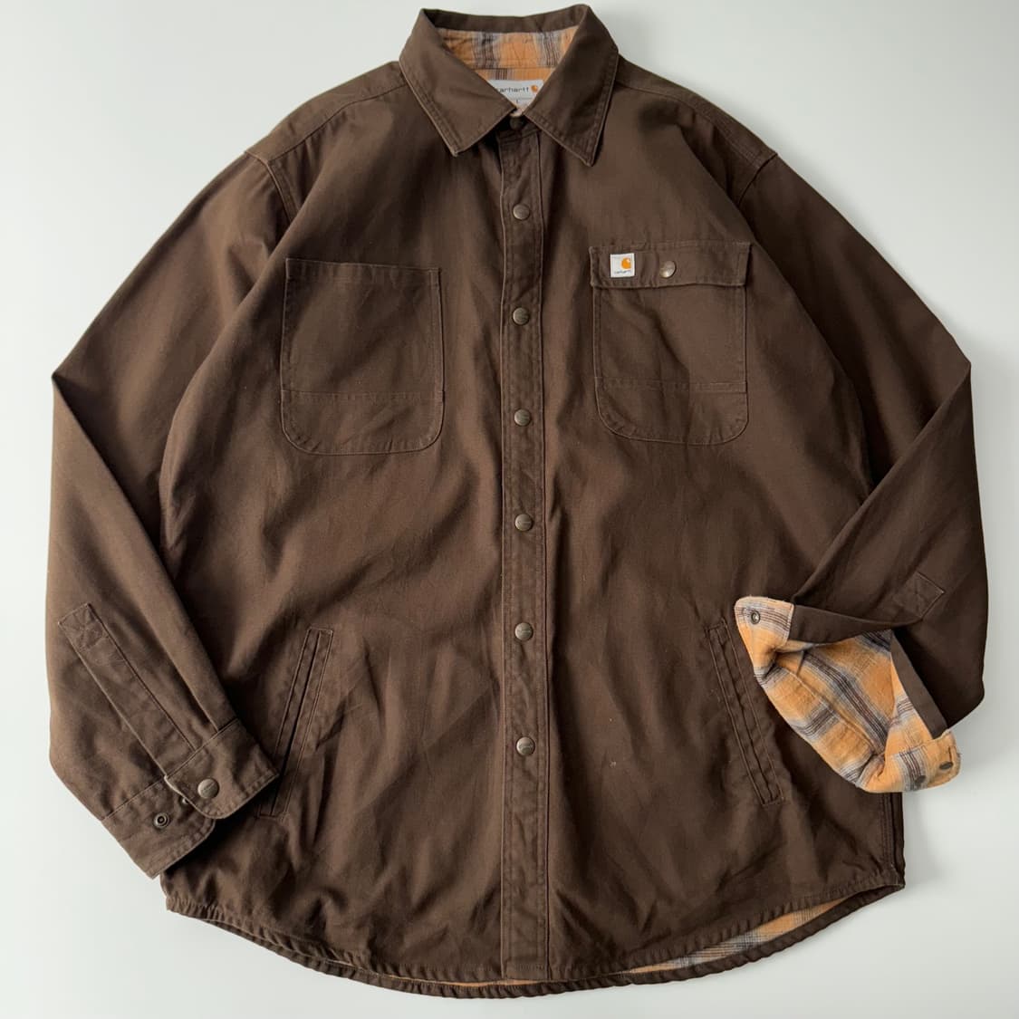 Carhartt 칼하트 90‘s OG 안감 체킹 초코브라운 아이언 버튼 셔츠 자켓-#윜구매가능 -칼하트 사의 ES168 모델의dkb 색상으로 셔츠와 가까운 디테일의 자켓이며 사이즈 감 또한OG 모델 답게 넉넉하고 이쁜 제품이며 아이언 버튼으로 모든버튼 각인또한 IG 모댈의 매력을 보여주고있습니다. Price:110,000won Size:110(실측사이즈XXL)(어깨57 가슴68 총장78) -제품구매및 제품문의는 DM부탁드립니다.