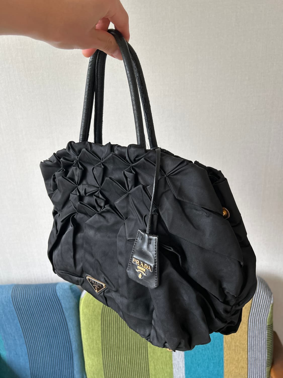 condition. D (전체적으로 생활감 느껴짐) 독특한 쉐입의 프라다 백이에요. 요건 제가 매려 세컨핸드샵에서 따로 구매한 제품이었어요. 보자마자 너무 제 스타일이라.. 반해서 구매했었죠! 당시 요 코디에 연출되어 있는 프라다 백 문의가 많았었는데, 좋은 주인분께 넘깁니다..* 큰 결함, 하자는 없지만 생활감과 사용감 전체적으로 존재하는 편이에요. 예민하신 분들은 꼭 피해주세요! (**상태 참고를 위해서 군데군데 자연광에서 사진 올려두었습니다. 확대해서 자세히 봐주세요!) 구매가보다 저렴하게 처분합니다. * insta @oyoyohaus * 중고 특성상 교환 및 환불 불가 * 계좌이체 결제시 이천원 할인