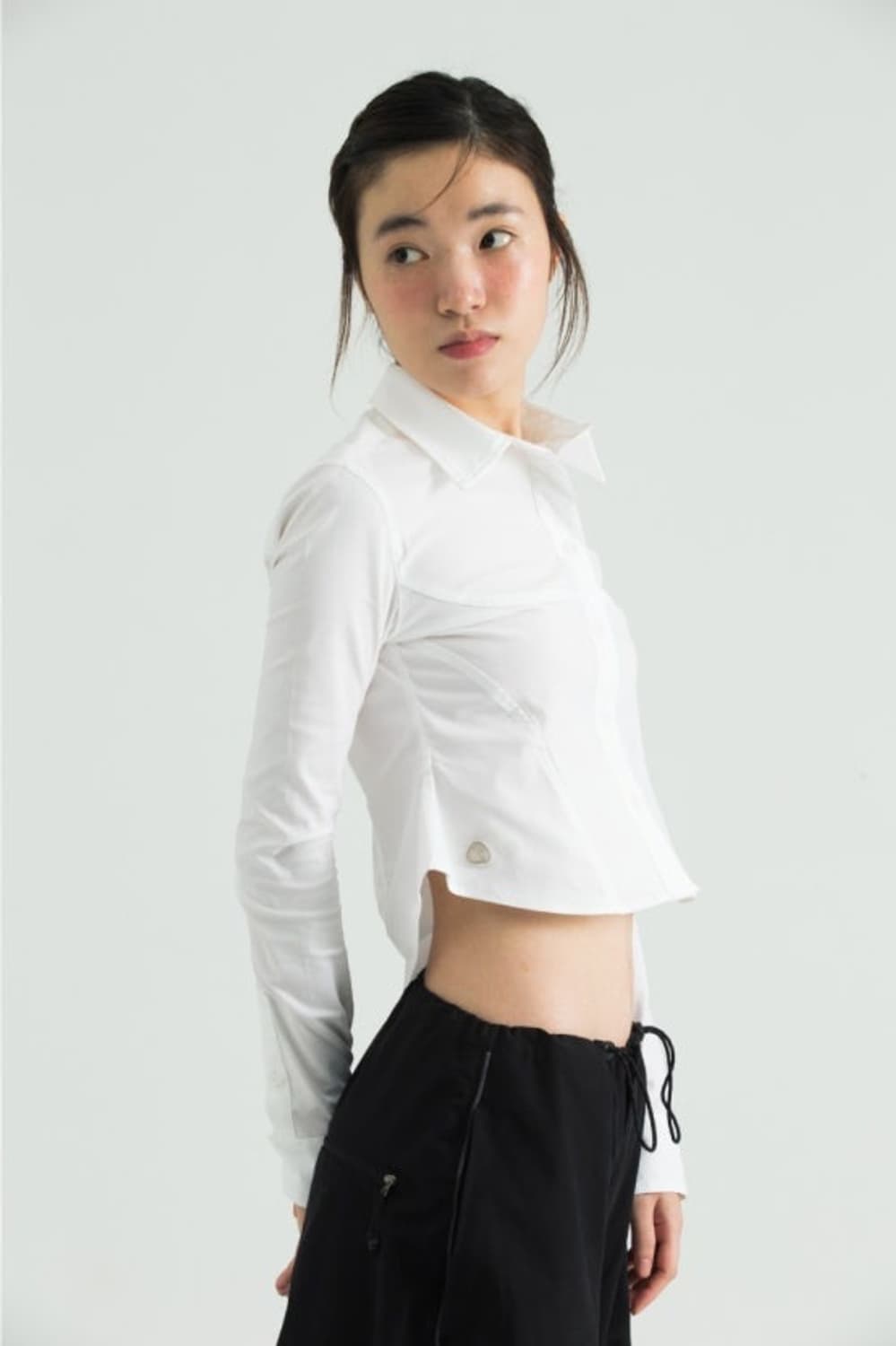 허그유어스킨 컷아웃 화이트 셔츠 Cut-out nylon shirts