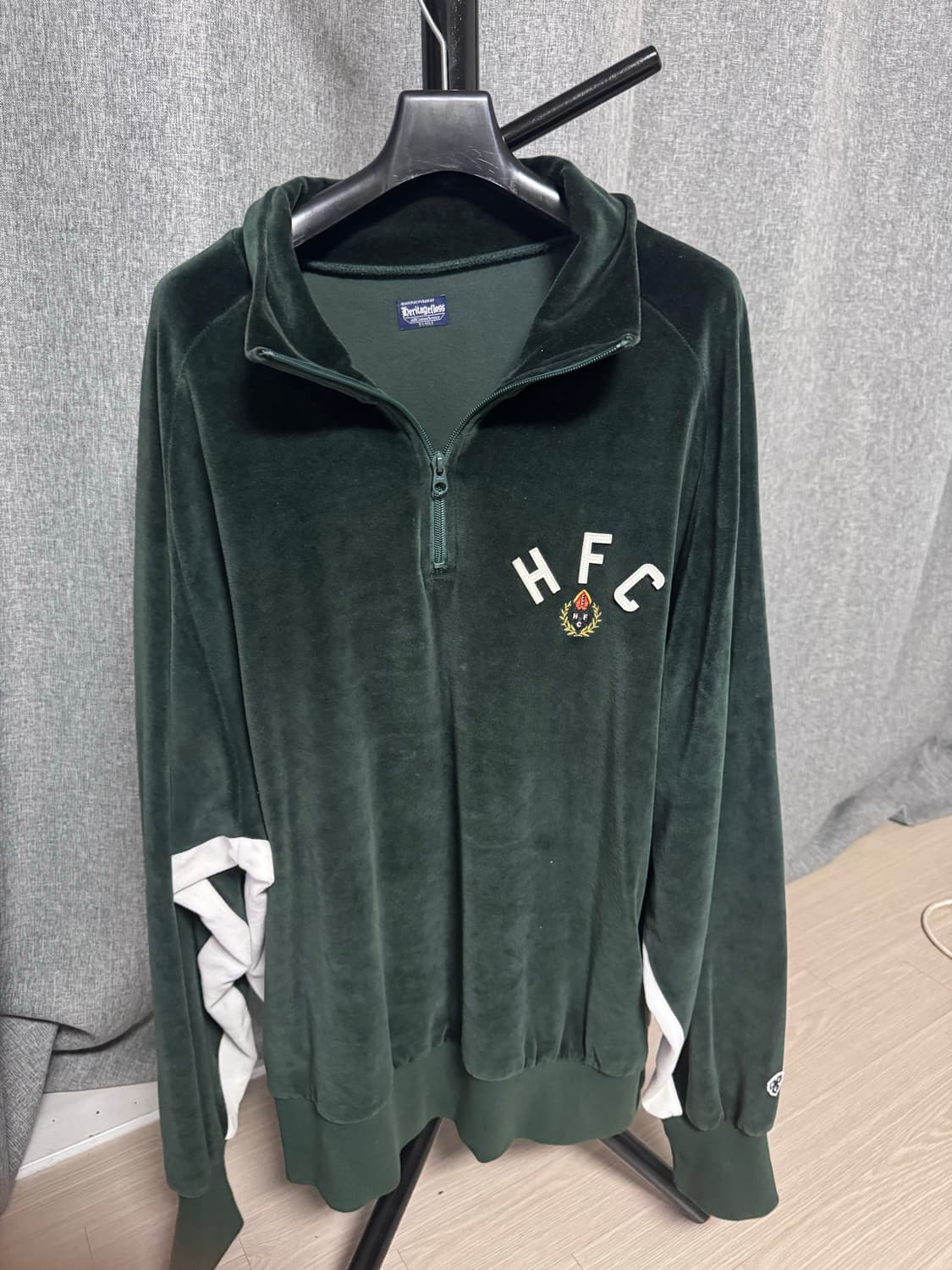 헤리티지플로스 벨벳 트레이닝 XL 사이즈입니다 색상은 그린이고, 부드러운 벨벳 소재로 되어있어요 - 브랜드: 헤리티지플로스(Heritagefloss) - 사이즈: XL - 색상: 그린 - 소재: 벨벳
