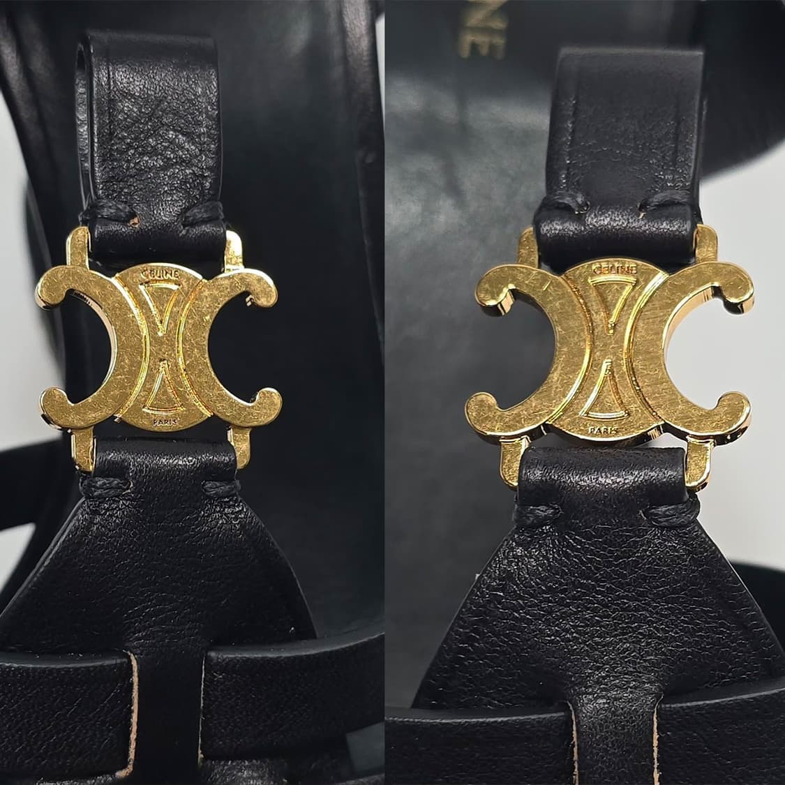 안녕하세요 누보클레입니다. 명품 매입도 하고 있으니 편하게 문의 넣어주세요. 제품 검수 후에 판매하며 100프로 정품만 판매합니다. 안심하시고 구매하셔도 됩니다.(명품 감별사, 감정사 1급 보유) 판매상품 : 셀린느 트리오페 로고 웨지 샌들 상태 : B- 사이즈 : 38 ( 245~250 ) ( 굽 12.5cm ) 구성품 : 케이스 더스트백 인보이스 판매가 : 320,000 거래방법 : 분당 서현역 직거래 / 택배 거래 ======= 상품 등급 기준 ======= N+ 새 상품 S 미세한 사용감 있는 컨디션 좋은 상품 A 전체적으로 내외부 사용감이 적은 깨끗한 상품 B 전체적으로 사용감이 있으며 편안하게 사용 가능한 제품 C 사용감 및 스크래치 있는 오래된 중고제품 ========================= * 평일 14 시 이전 입금 * * 우체국 택배 당일 발송 * * 유의사항 * 사진 도용이 많아 추가 상세 사진 보내드리지 않으며 결제 후에 필요하신 추가 사진 첨부 가능 한 점 참고 부탁드립니다. 에누리, 교신 불가능합니다. 중고물품 특성상 환불 불가능하니 참고해 주세요.