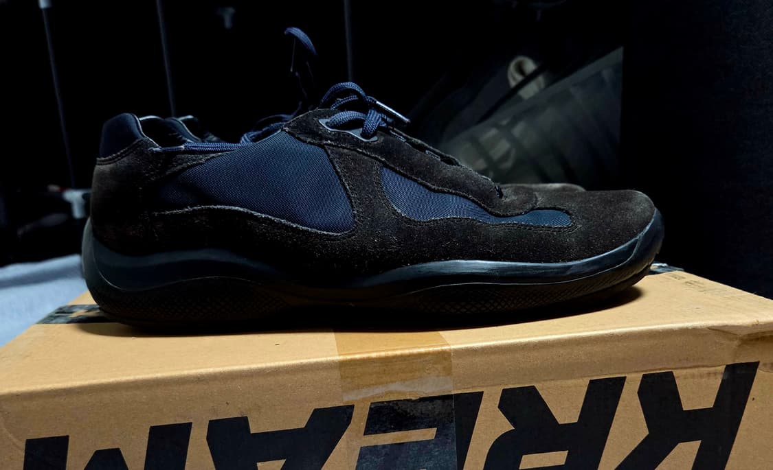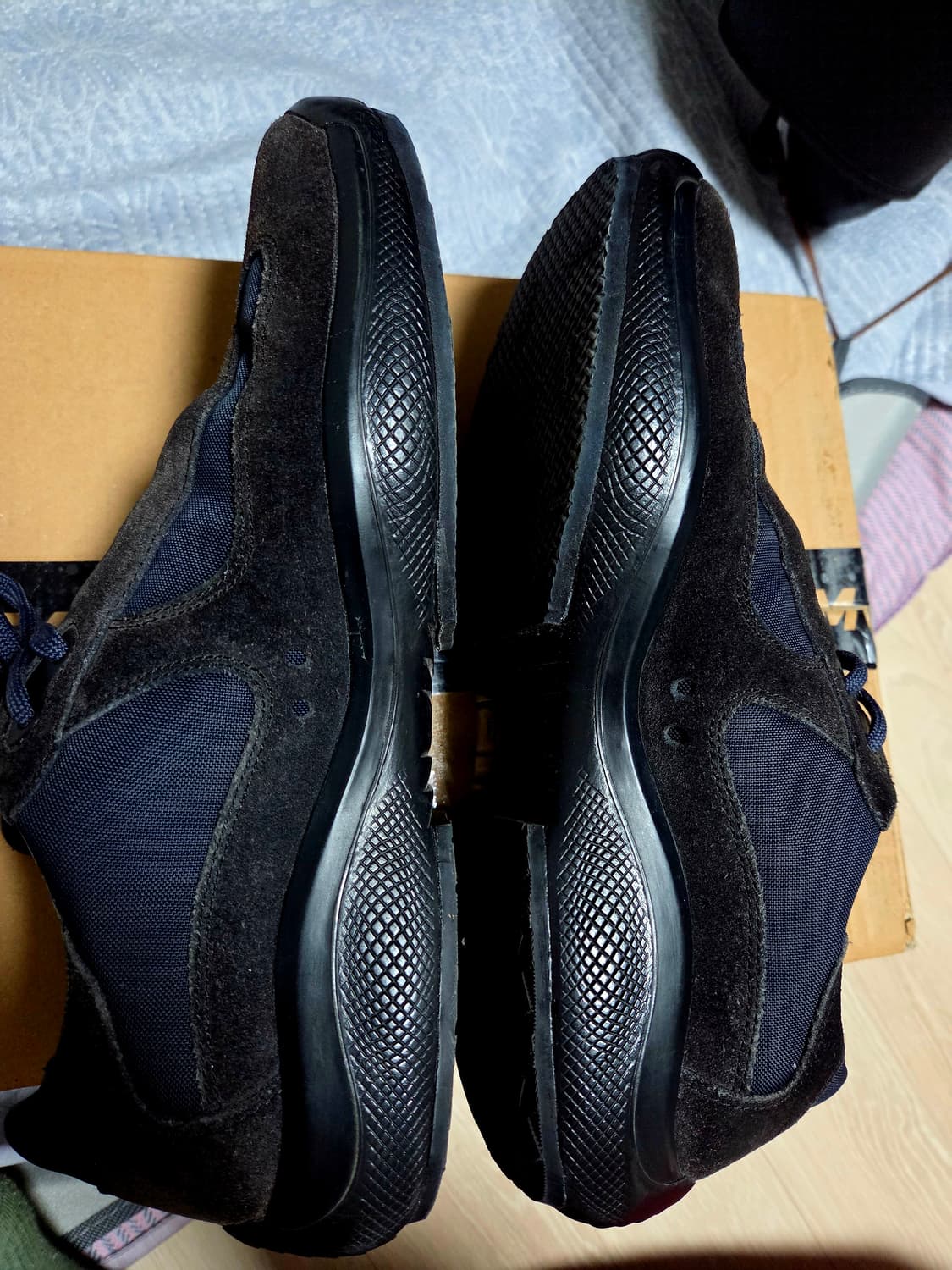 아이코닉 슈즈죠. 프라다 아메리카컵 입니다. 다크브라운스웨이드와 다크블루의 원단의 조합으로 너무 이쁘네요. 사진대로 세월고려하면 상태 좋습니다. 그리고, 발 닫는 힐컵부위가 가죽이라 더 좋았습니다. 앞뒤축 비브람 보강돼있는 모델입니다. 아메리카컵은 현행보단 빈티지로 즐겨보는게 어떨까요? 네고문의는 안받습니다. 연락주세요