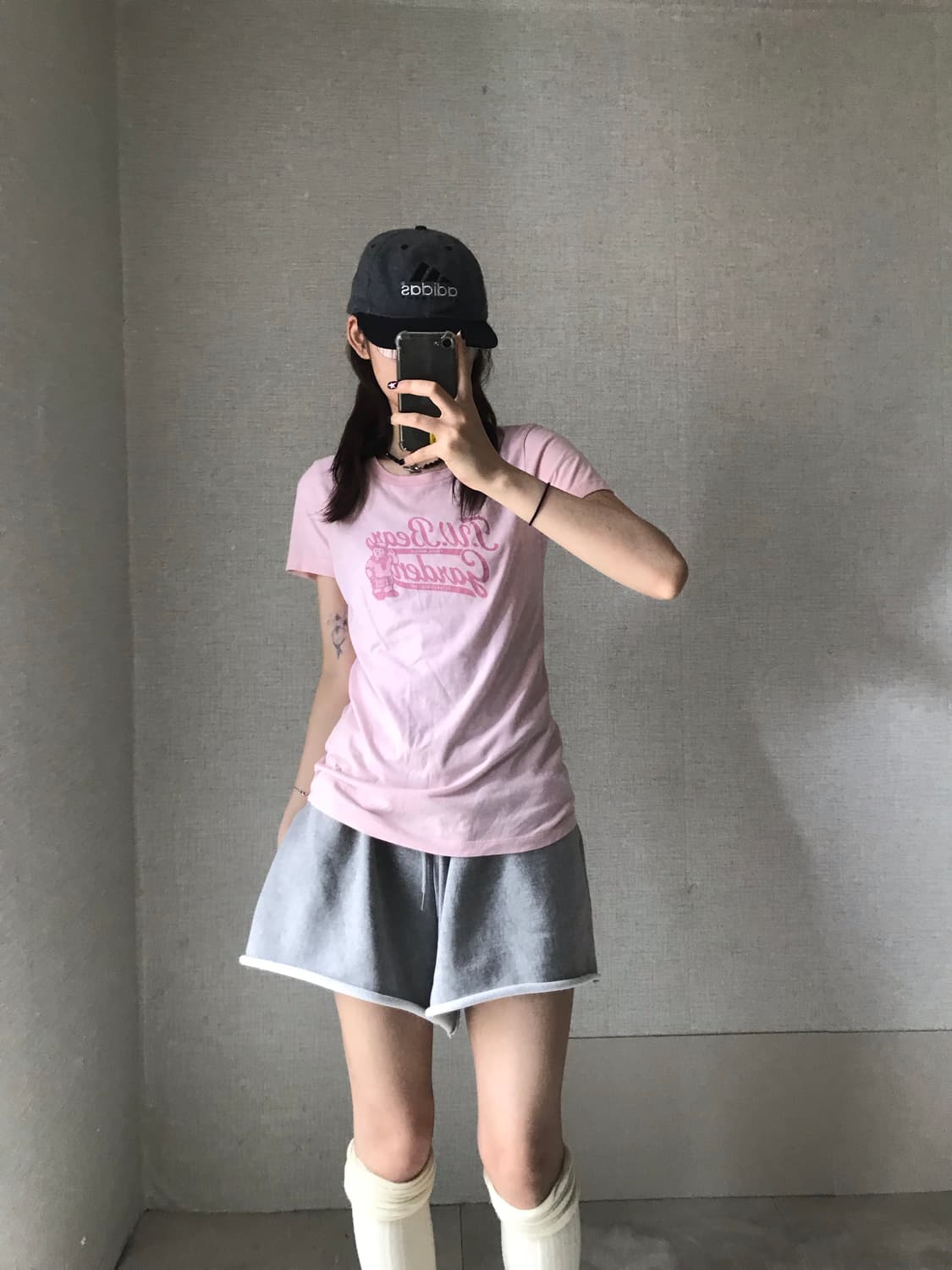 ¥ Teenie Weenie pink slim fit half T Size: 총장60 가슴47 Price: 49,000