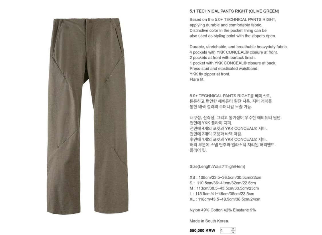 급매 - 6.0 포스트 아카이브팩파프 (PAF) 테크니컬 팬츠 센터 s