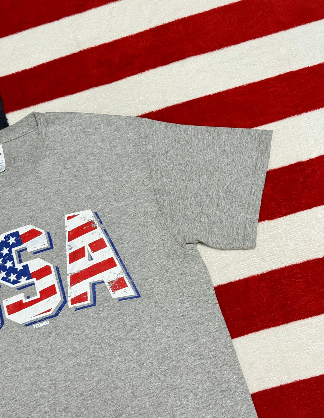 𝐃𝐄𝐋𝐓𝐀 𝐔.𝐒.𝐀 𝐕𝐢𝐧𝐭𝐚𝐠𝐞 𝐓. 빈티지하게 크랙으로 제작된 USA 프린팅과 노멀하지만 미국스런 느낌의 티셔츠입니다. 적당한 온스의 제품이며 사용감 적은 좋은 컨디션입니다 .사이즈감은 스탠다드한 느낌이며 m사이즈로 나왔으나 L 사이즈분들도 코디하실수있으며 갠적으론 핏하게 입는걸 강추 드립니다.😊 Price :₩30.000 Size M 어깨 47.5 가슴 51 팔기장 20 총장 71