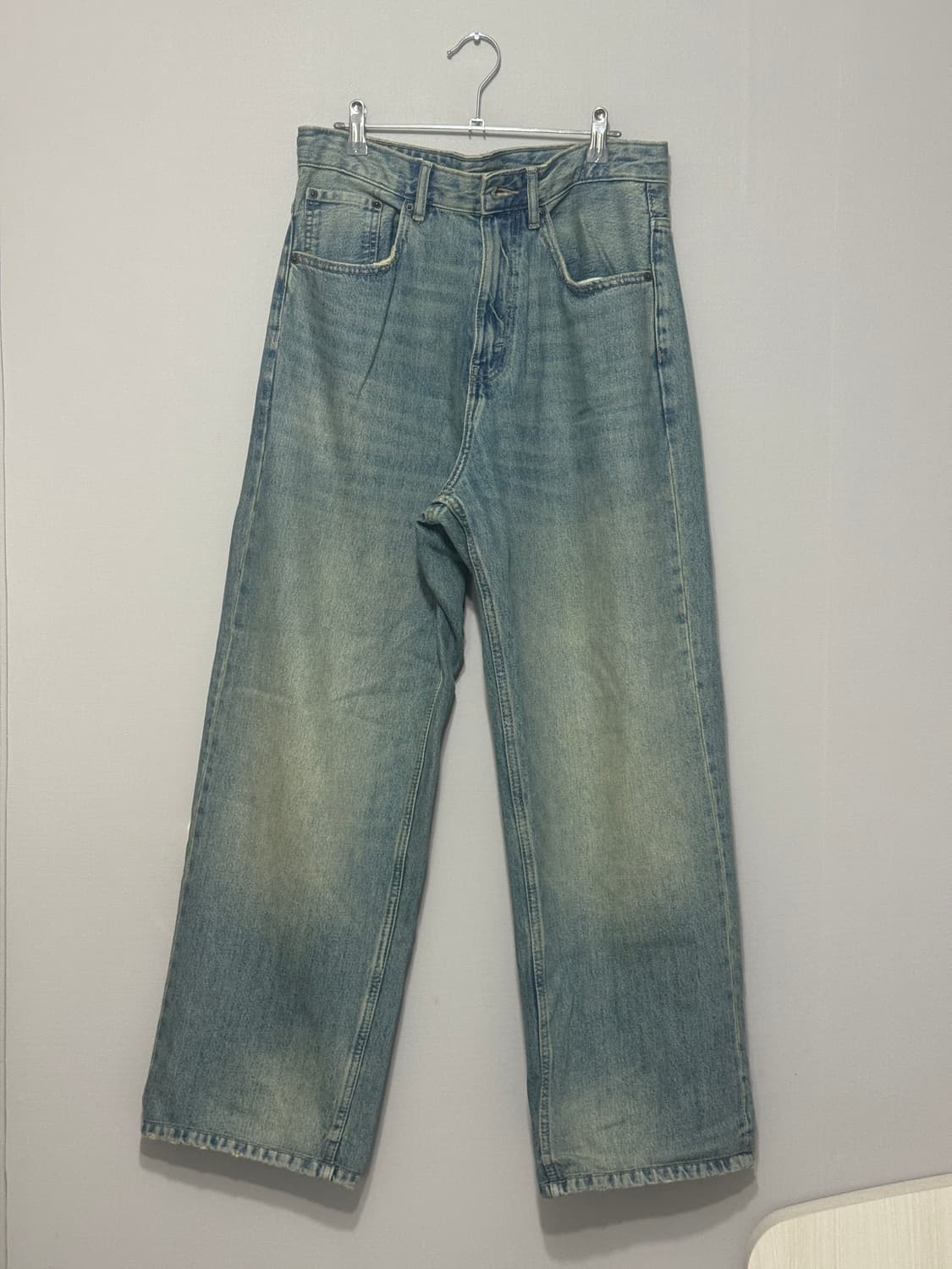 자라에서 구매한 빈티지한 워싱이 들어간 배기핏 데님입니다. 꽤 넉넉한 핏으로 나왔고, 스트릿한 패션에 잘 어울리는 느낌입니다. 스타일 변화로 판매합니다. 175/68 기준 사진과 같은 핏 나오며, 허리는 살짝 커서 벨트 매주시면 됩니다. 택배비 포함 가격이며 교환 및 환불은 어렵습니다. 궁금한 점 편하게 문의주세요:)