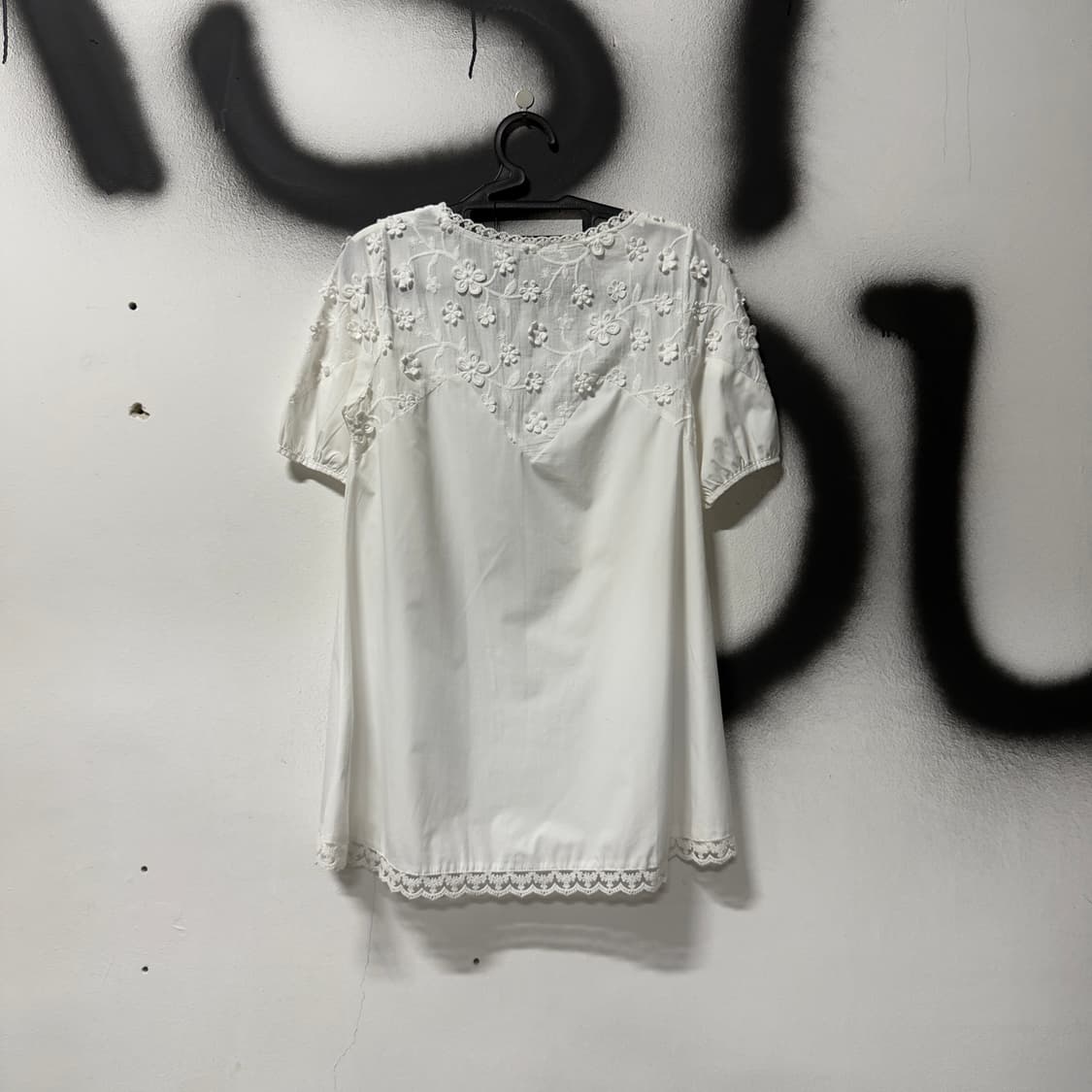 올화이트 색감의 자수 반팔 티셔츠입니다 모루하구미 무드의 기본 아이템으로 활용하시기 너무 좋은 제품입니다 특히 윗부분 꽃이 전부 자수로 새겨져 있어 퀄리티 너무 좋은 상품이에요 어깨 : 34 가슴단면 : 46 총장 : 74 모든 치수는 센치 기준입니다. 여러상품 혹은 쿨거래시 할인 가능합니다!