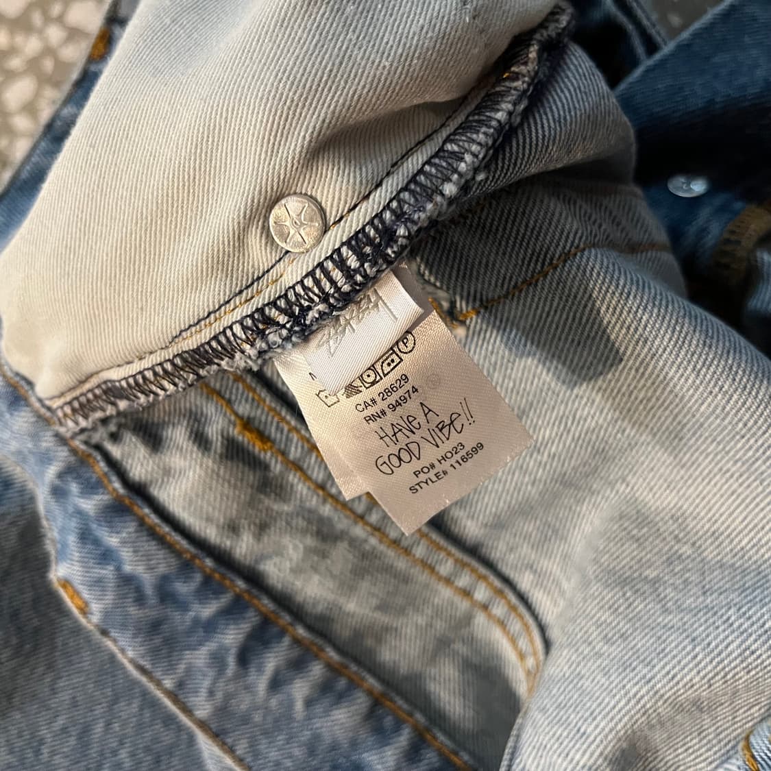 스투시의 데님 팬츠입니다. 14.5oz의 탄탄한 데님 원단이 사용된 제품으로, 밑단 아타리를 포함한 인위적이지 않은 워싱감과 넉넉한 실루엣이 좋은 제품입니다. 코인 포켓 부근 자수가 들어간 디테일을 제외하고는 전형적인 5포켓 데님의 형태이기 때문에 범용성 있게 착용하기 좋은 제품이며, 밑단을 제외하고는 사용감 적은 양호한 컨디션 유지 중입니다. 👉 Stussy Big Ol Jeans - 표기 사이즈 : 34 - 실측 사이즈(cm) : 45(허리) 36(밑위) 37(허벅지) 108(총장) 24(밑단) - 상태 : 자연스러운 사용감 존재 Offline Store - 서울 마포구 포은로 11 2층 도비가 Instagram - @dobbyga_ 홀딩을 포함한 모든 문의는 언제나 환영입니다. 감사합니다!