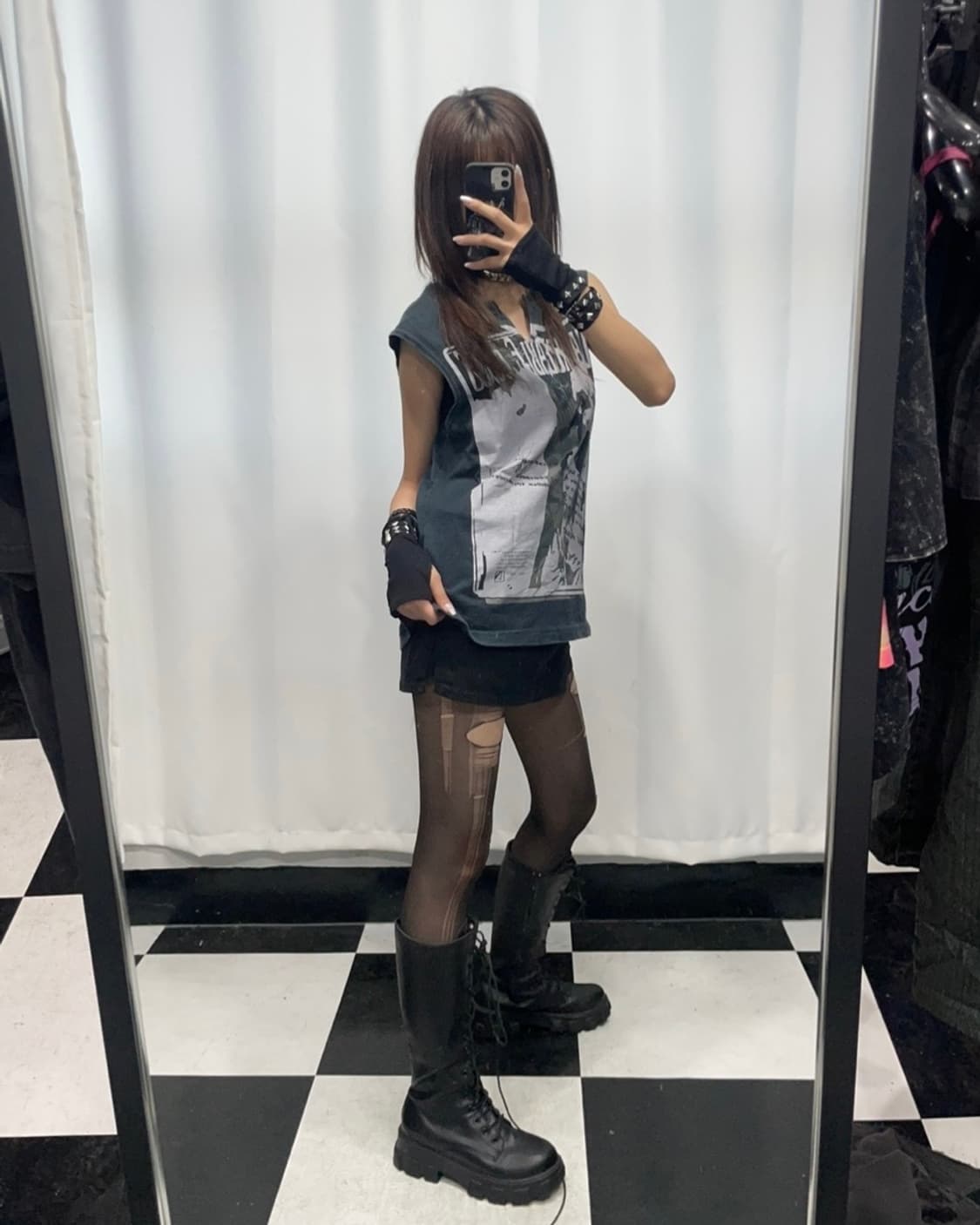 ๐ธPunk Printed Sleeveless๐ธ Size - M Shoulder : 40cm Chest : 47cm Length : 65cm price - 42,000