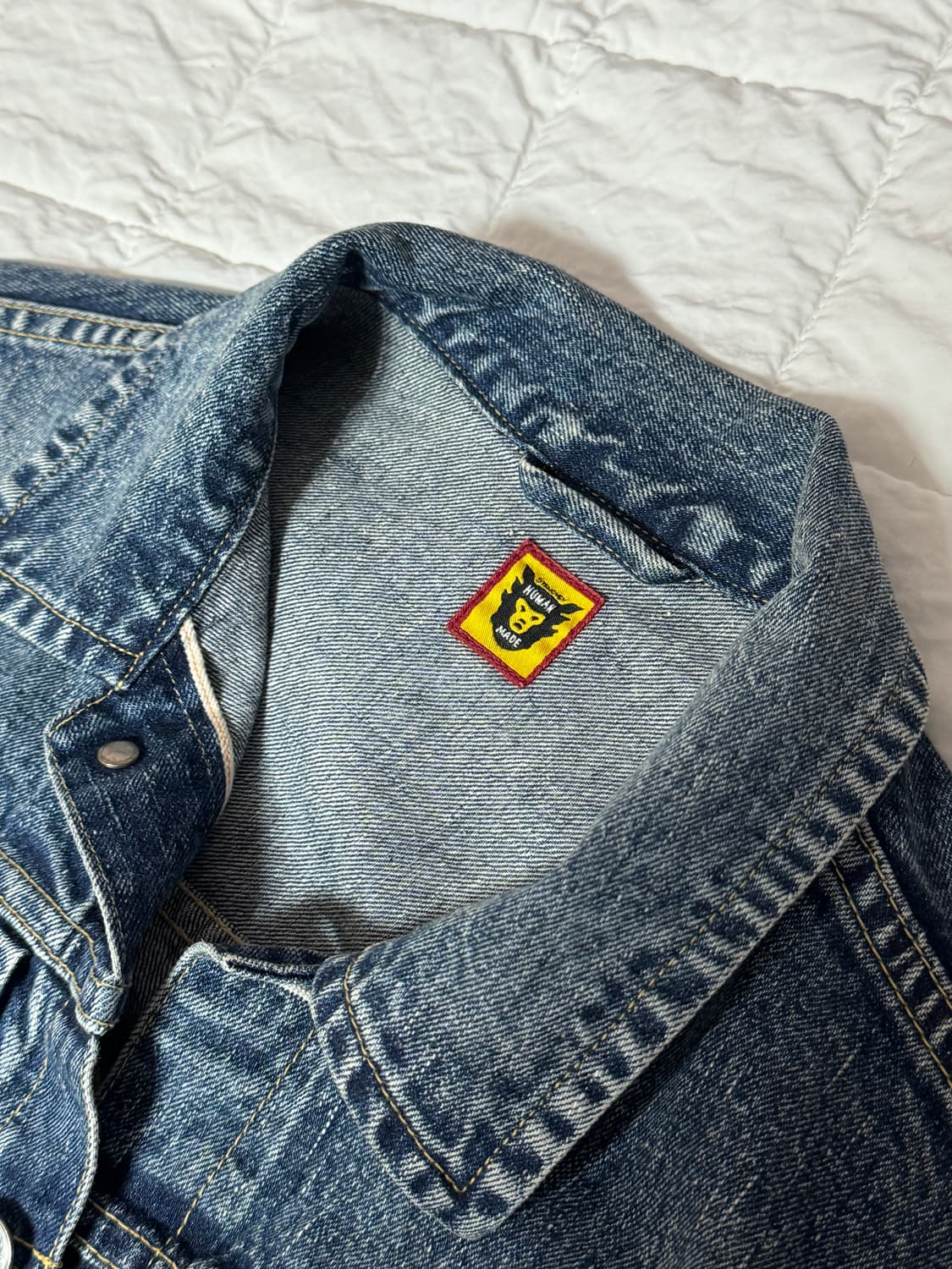 휴먼데이드 백로고 데님 자켓입니다 백로고 자수로 들어가 있고 흠 잡을곳 없이 정말 예쁜 모델입니다 크림에서도 계속 가격 오르고 있는 모델입니다 비싼 데님은 처은라 관리 항상 스타일러로 했습니다 비흡연자라 찌든 냄새도 일절 없습니다 집 거울 앞에서만 여러번 입어보고 밖에 나가서는 몇번 입지도 못했습니다 ㅜ xl 사이즈로 총장 60후반 나옵니다 170 초중반 적극 추천드립니다 안팔리면 소장계획 입니다 네고는 죄송합니다🙏