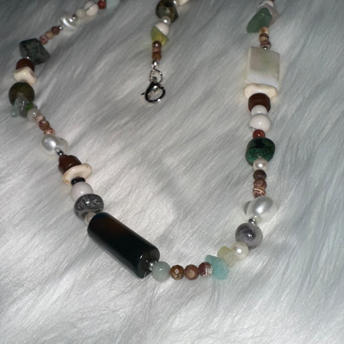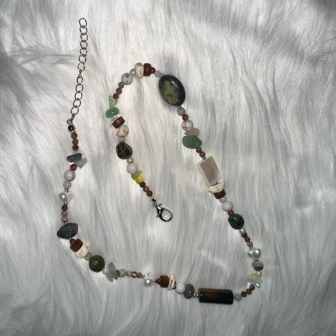 • 제품 : NECKLACE • 026 one size: 44.5cm (조절사: +5cm) 🤍 구매 전 유의사항 필독 부탁드립니다. * 전 제품은 핸드메이드로 One & Only로 제작되어 판매되는 점 참고 부탁드립니다. * 판매가 완료된 제품은 동일하게 재제작이 어려울 수 있으나, 원하시는 분위기나 색상을 기반으로 한 맞춤 제작을 환영합니다. 편하게 문의해 주세요. :) * 제품 수령 후 단순 변심으로 인한 교환 및 환불은 어렵습니다. * 일부 비즈들 특성상 일정한 모양이 아닌 각각 다른 크기, 모양, 재료 무늬 및 색상 등이 상이하다는 점을 알립니다. * 모니터의 밝기 및 해상도, 색감에 따라 실제 색상과 차이가 있을 수 있습니다. * 알러지 반응은 개인차가 있으므로 피부가 매우 예민하신 분들은 신중한 구매 부탁드립니다. * 택배 발송은 결제 후 평균 1~ 3일 안에 발송합니다. * 배송 도착은 발송일 기준 2~ 3일 정도 소요되며, 각 지역 택배사의 사정에 따라 늘어날 수 있으며, 제주 및 산간지역의 경우 5~ 7일 이상 소요될 수 있습니다. Be Really의 모든 악세사리 디자인은 정성스럽게 하나하나 직접 제작한 고유한 창작물입니다. 비슷한 디자인의 무단 사용이나 상업적 활용은 삼가주시길 부탁드리며, 소중한 창작물 보호를 위해 너그러운 이해 부탁드립니다. #비즈목걸이 #목걸이 #비즈 #남자목걸이 #원석목걸이 #여자목걸이 #원석 #핸드메이드 #핸드메이드목걸이 #자체제작 #handmade #beads #necklace #젠더리스 #빈티지