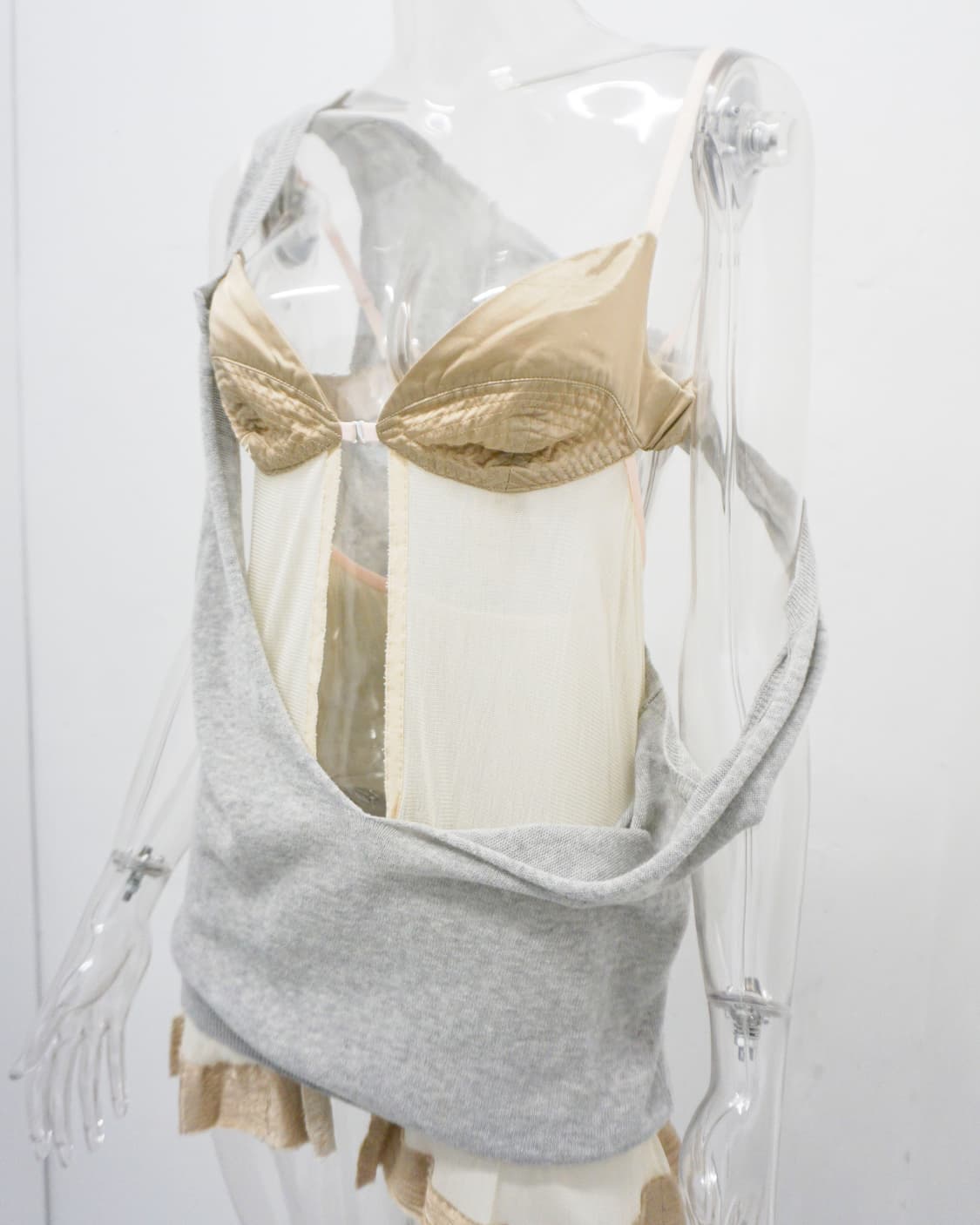 sacai의 실험적인 레이어링 기법이 돋보이는 2005년도 제작의 니트 슬리브리스 탑입니다. 바디라인을 따라 자연스럽게 드레이프되는 소프트 니트 위에 새틴 브라 디테일이 레이어드된 독창적인 구성으로, 브랜드 특유의 하이브리드 감성을 그대로 담고 있습니다. MATERIAL - 100% cotton, (Attached parts) 100% silk, 100% cupro COLOR - gray SIZE - (3) Chest 40cm(밴딩), Total Length 75cm CONDITION - Maintained in excellent condition with no stains or signs of wear. 하자 없이 좋은 컨디션 유지중 입니다. COMPONENTS - X * 정품이 인증된 제품만을 취급하고 있으며, 명품 감정사가 검수 후 발송하고 있습니다. * 계좌이체로 결제 시 무료 배송해 드립니다. 메세지로 문의 부탁드립니다 :) @meama.love Purchase or Contact DM SECONDHAND LOVE SHOP MEAMAდ
