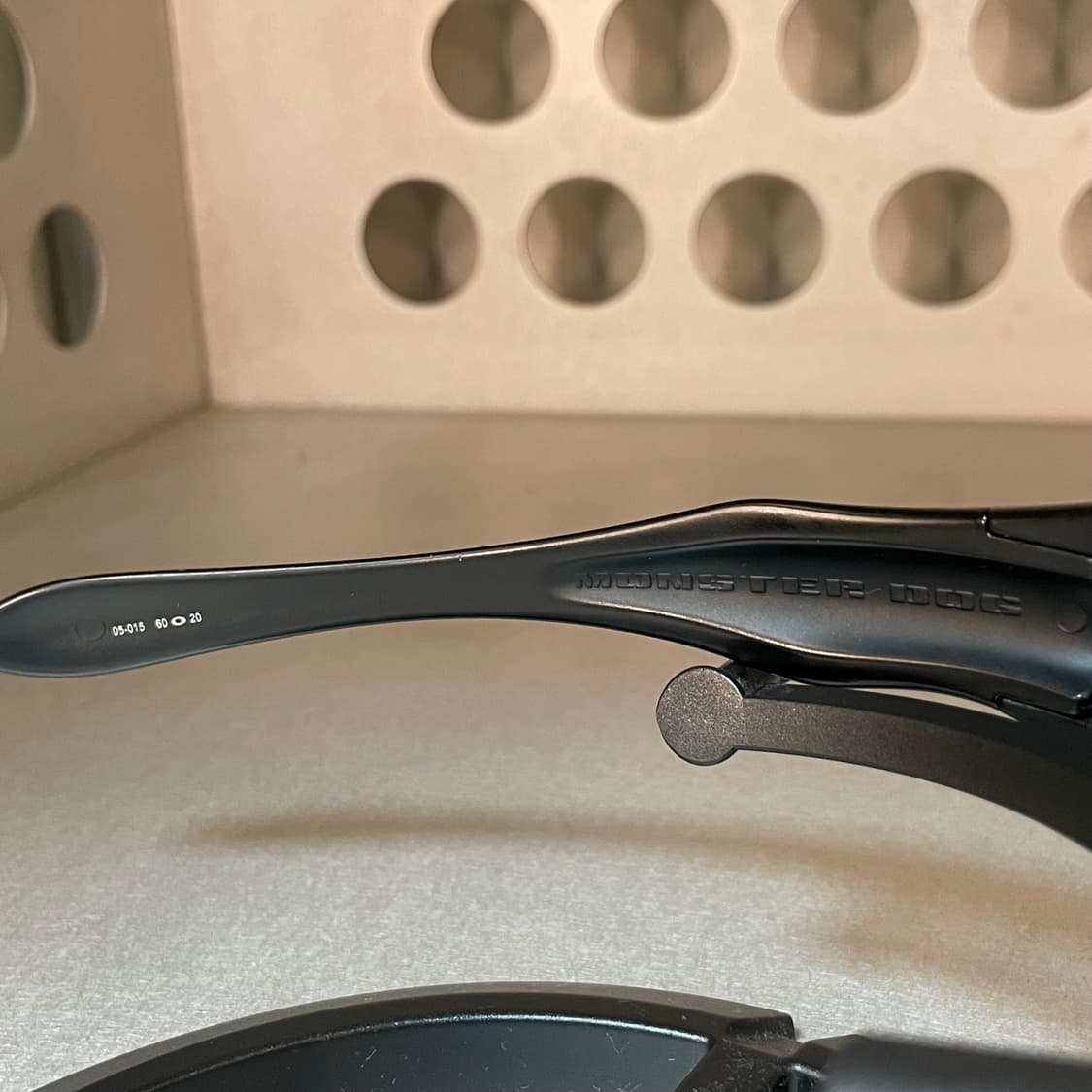 Frame : Matte Black Lens : Black Polarized Date : 2003 아이자켓, 미뉴트와 더불어 오클리 대표 아이템 몬스터독 입니다. 고무 부품이 없어 따로 교체할 필요없이 반영구적 사용이 가능한 모델이며 가장 인기의 무광블랙 프레임과 새제품 편광 기능의 블랙렌즈 조합으로 어디든 매치하기 편하며 더욱 시크한 무드를 연출합니다. 우측 전면 프레임 떨어뜨림으로 인한 데미지 존재합니다. 외에 이상 없이 컨디션 좋습니다. 1990년대~ 2000년대초 출시된 오클리 선글라스는 아직까지도 디자인, 기능 모든게 센세이션한 아이템으로 인정받아 전세계 많은 매니아들이 있으며 현행 제품보다 가치가 더욱 높아지고 있습니다.