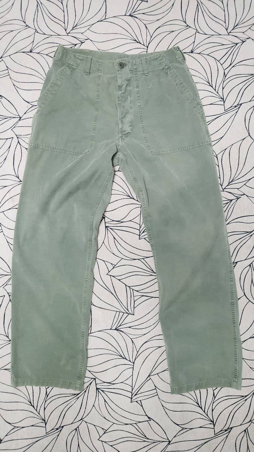 FREE CITY Fatique Nina 카키 면바지입니다 사이즈는 34이고, 면 100% 소재예요 - 빈티지 워싱 처리되어 자연스러운 멋이 있어요 - 뒷면에 FREE CITY 로고 프린트가 포인트입니다 - 상태는 자연스러운 사용감에 빈티지스러워 멋집 폭팔입니다. - 정상가격 27만원 사이즈는 허리단면43 총장112입니다. 오염이있어 저렴이 올리며 총장이 길어서 문제 없어보여 매물로 내놔보아요.