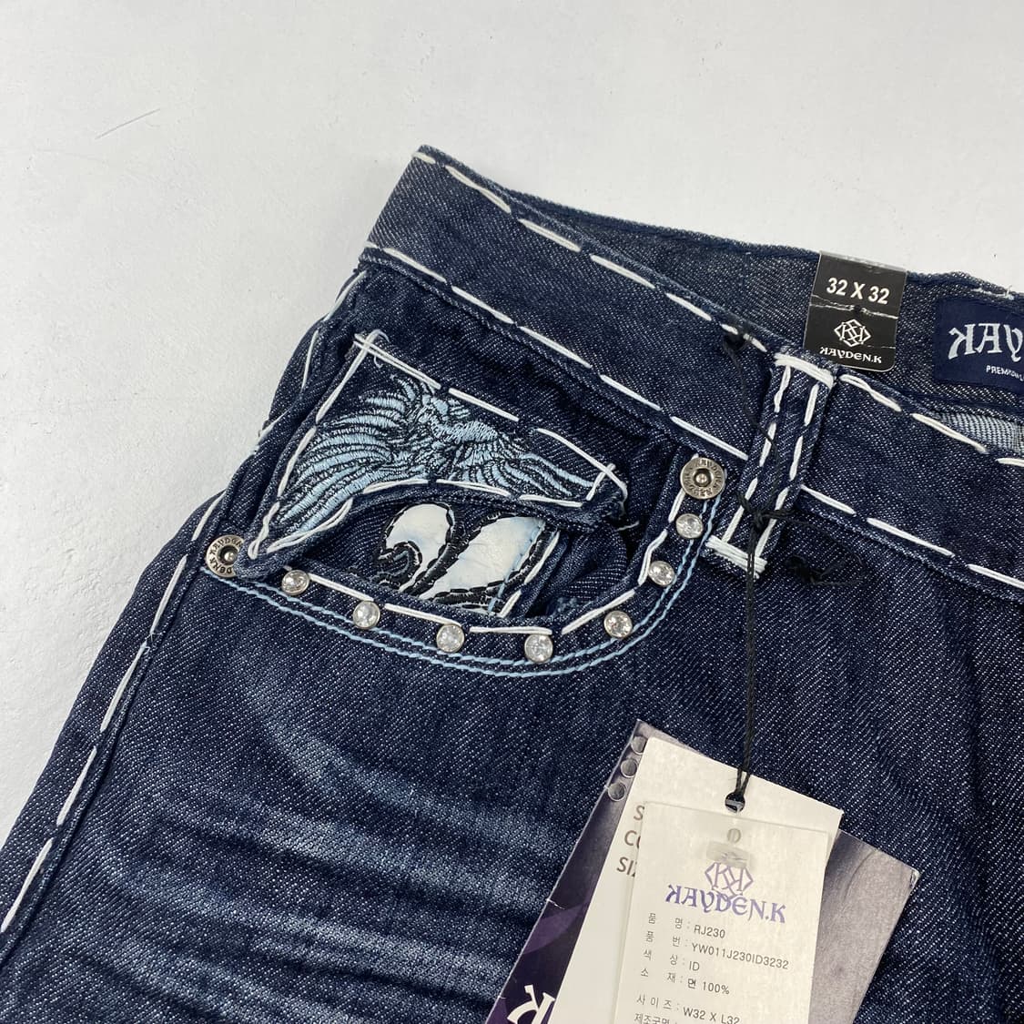 빈티지 스트레이트 스터드 데님 진 (32) -가격 65,000원 -사이즈 32 / 권장사이즈 32 -실측 기장 106cm 허리단면 42cm 허벅지단면 33cm 밑위 24cm 밑단 23cm •상점내 상품 두개이상 구매시 무료배송 •상점내 상품 세개이상 구매시 무료배송+추가만원 할인 진행중입니다 0609