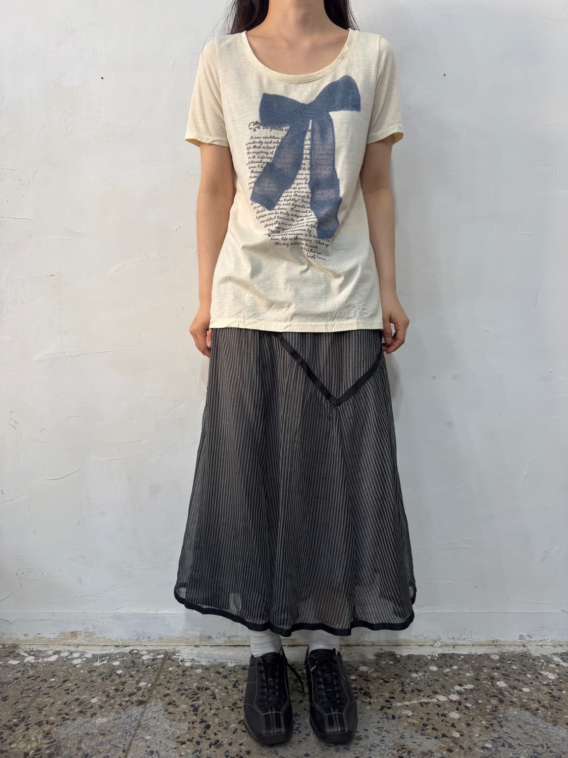 ribbon printing top 보풀감 존재 •size(cm) shoulder:36 chest:47 length:64 sleeve:20 price: 2.4