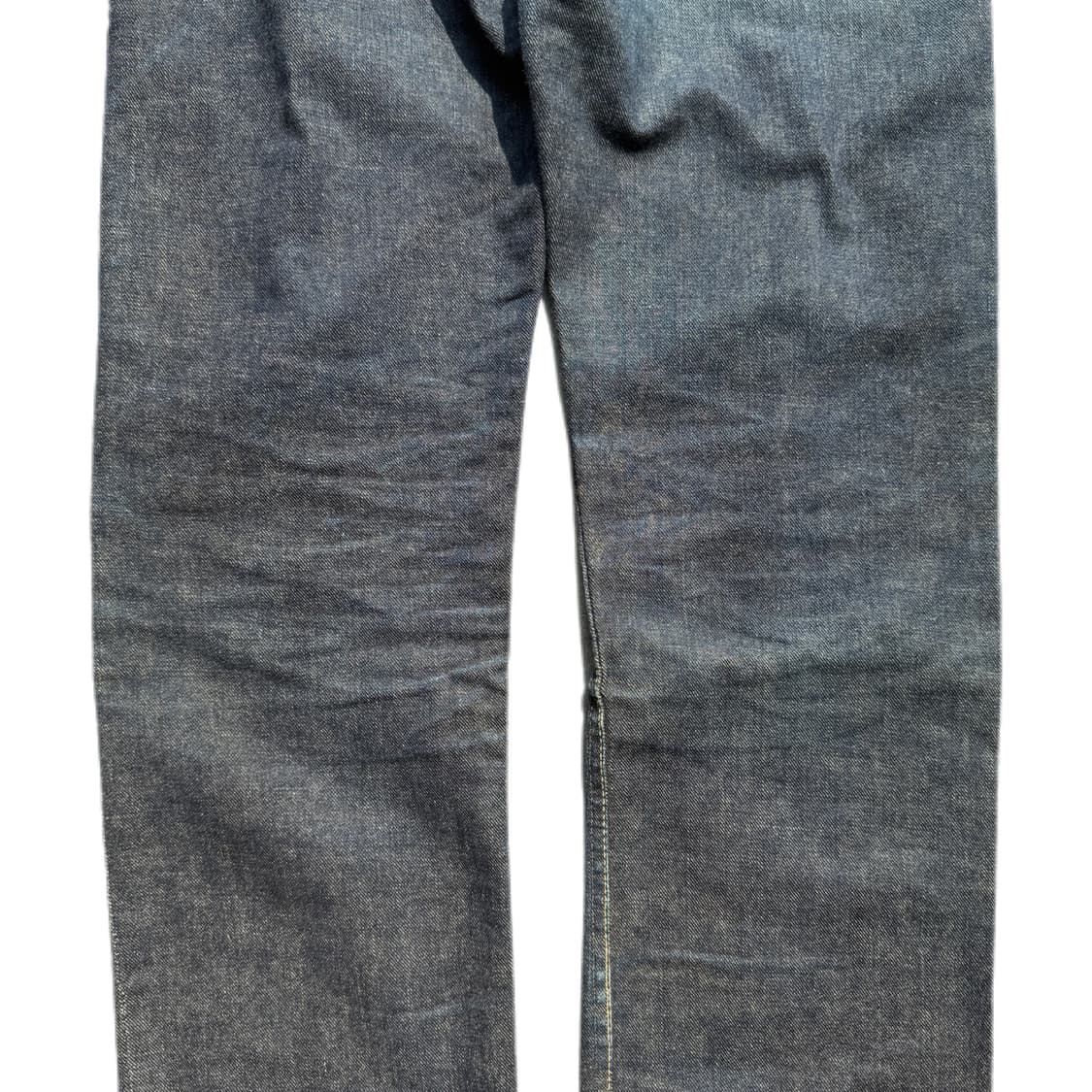 2831 bape selvedge denim pants 사이즈 M(-31.5in) 기장 103.5 허리 40(-31.5in) 허벅지 29 밑단 21 ₩150,000 백포켓 사루패치와 뒤집었을때 베이프 셀비지라인이 특징