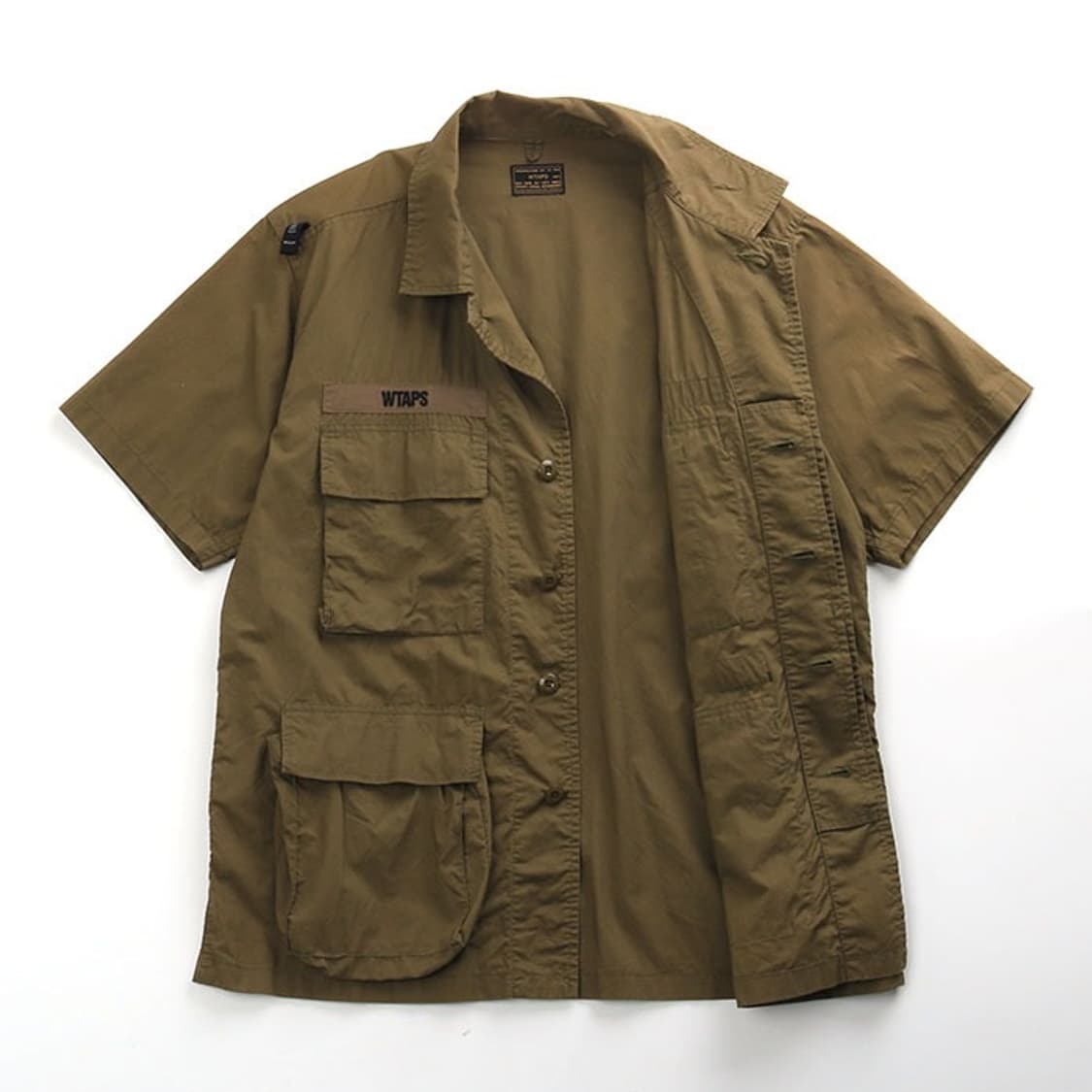 WTAPS의 반팔셔츠 입니다 빈티지 밀리터리 셔츠 디자인을 모티브로 브랜드 특유의 터프한 디테일이 매력적인 제품 입니다 연출에 포인트 아이템으로 추천 드립니다 추천사이즈 105 입니다 올리브 3 어깨 48 cm 팔 25 cm 가슴 60 cm 총기장 74 cm