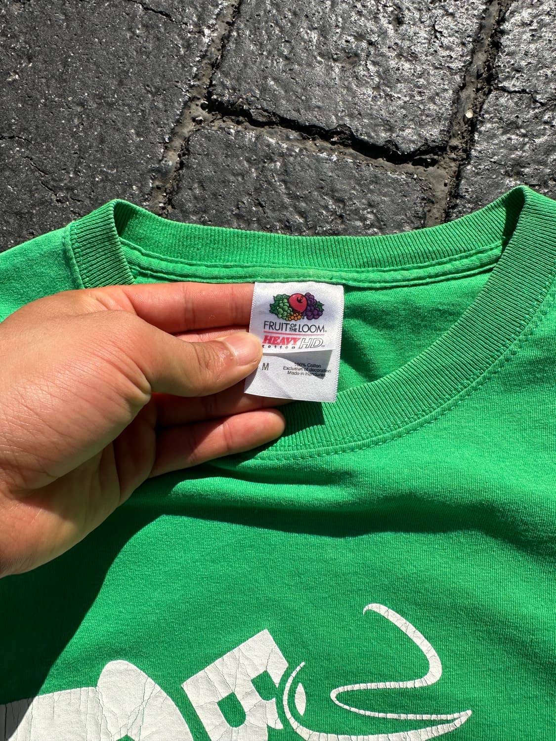 90’s Fruit of the loom Belize T-shirt 미국 브랜드 fruit of the loom 사의 프린팅이 특징인 반팔 티셔츠 입니다. Fruit of the loom이란 브랜드는 1851년 미국에서 설립된 170년 이상의 역사를 지닌 대표적인 라이프스타일 의류 브랜드입니다. '모두를 위한 편안한 라이프스타일 제품'을 철학으로 삼으며, 미국 내에서도 두터운 지지를 받아온 브랜드입니다. 이 브랜드는 티셔츠, 스웻셔츠, 팬츠, 양말 등 데일리웨어를 중심으로 다양한 의류 제품을 선보이며, 특히 빈티지 스타일과 세컨핸드 패션 시장에서도 큰 인기를 끌고 있습니다. 이 제품은 쨍한 에메랄드 색감과 레터링이 특징인 제품입니다. 레터링에 적힌 “Belize”는 중남미 국가 벨리즈(Belize)를 언어유희로 활용한 표현으로 보이며 이런 디자인은 보통 벨리즈 현지 기념품 티셔츠에서 흔히 볼 수 있습니다.이 제품 또한 그런 녀석으로 보이네요! 또한 레트로 스타일로 텍스트가 들어가 있어 빈티지한 매력이 더해진 느낌입니다. 사이즈가 허용되시는 분들께 남녀공용으로 추천드립니다! - 총장 67 어깨 54 가슴 55-6 소매 20 - Size: M (표기) - Price: 2.8 - • 빈티지 특성상 약간의 오염이 있을 수 있습니다. • 교환, 환불이 어려워 신중한 구매부탁드립니다. • 약간의 사이즈 오차(1,2cm)가 있을 수 있습니다. - Contact DM Discount ALSO