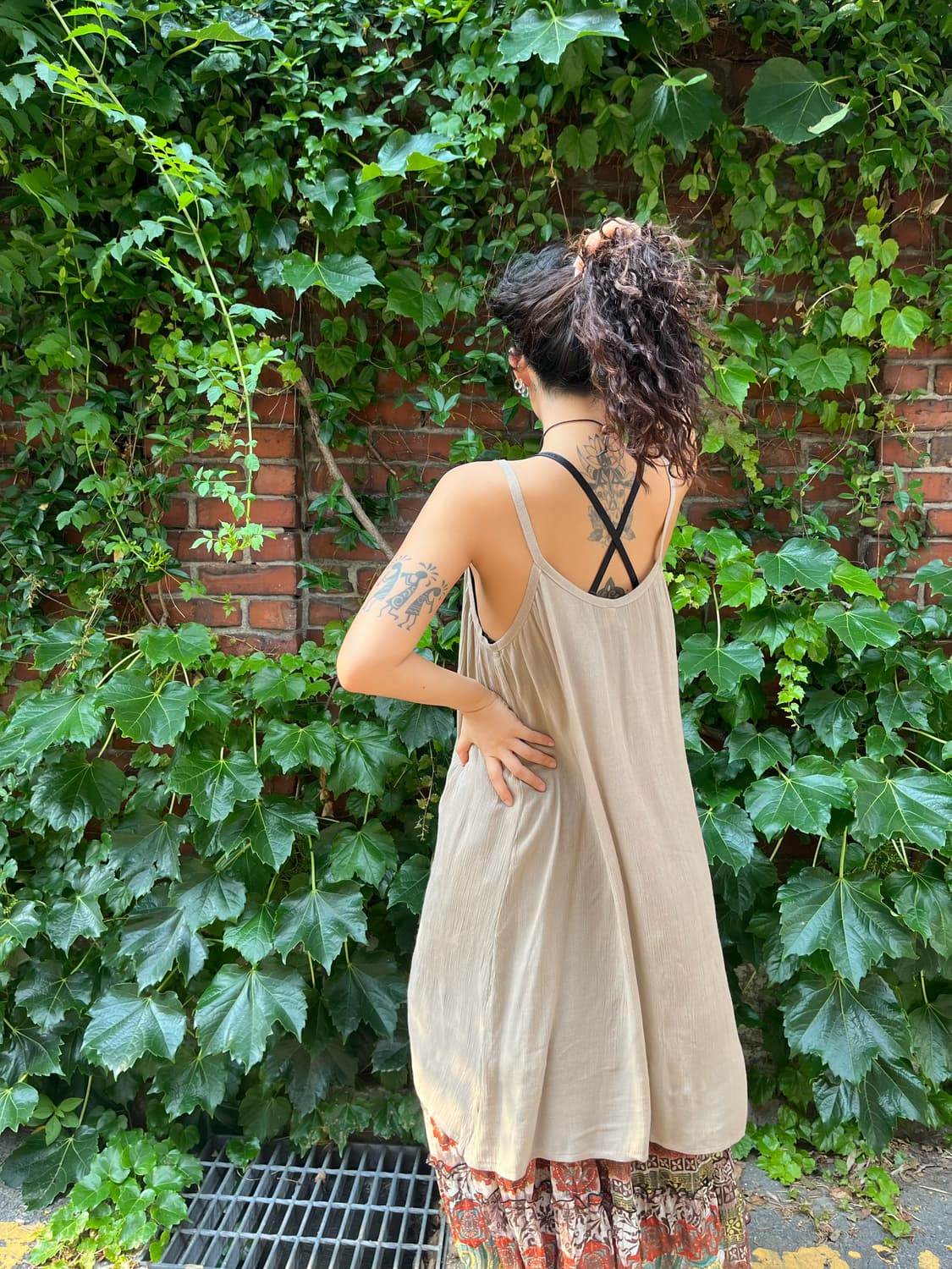 오트밀 베이지 컬러감에 데일리 하면서 레이어드 아이템으로 좋은 원피스입니다:) (총장 99cm/ 가단 50cm)
