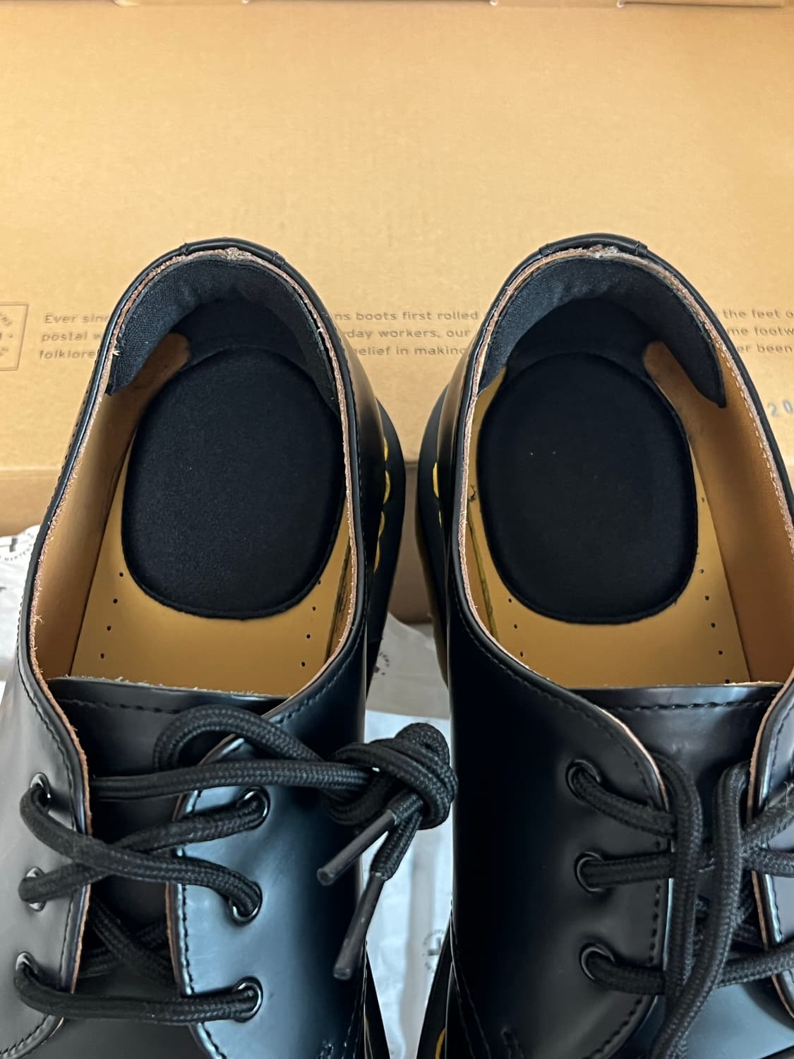 Dr. Martens 1461 Smooth Black 닥터마틴 1461 스무스 블랙 사이즈: 270 크림 구매 제품으로 단시간 1회 착용해, 상태 거의 새 상품 급입니다. 뒤꿈치 패드 붙여놨는데 뗄 수 있고 택 포함 구성품 모두 가지고 있습니다!