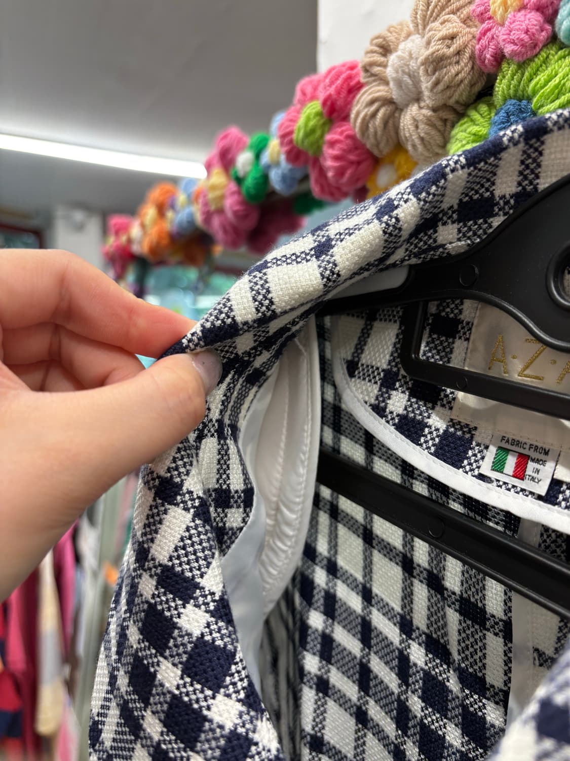 일본 빈티지 체크 패턴 썸머 자켓이에요. 러블리한 퍼프 소매와 과감한 빅단추 디테일, 팔뚝에 들어간 컷팅 포인트까지! 어깨에 패드가 있어 각을 잘 잡아줘요. 감각적인 실루엣과 디테일이 돋보이는 유니크한 아이템이에요. 이탈리아산 원단을 사용해 착용감도 시원하고 쾌적해요. 📍특징: 이탈리아 원단 / 퍼프 소매 + 소매 컷팅 포인트 / 러블리한 빅단추 / 체크 패턴 📍사이즈: S ✨전체 고온스팀/살균 처리 후 클리닝 완료된 제품입니다. ✨교환/환불이 불가하니 신중한 구매 부탁드립니다.